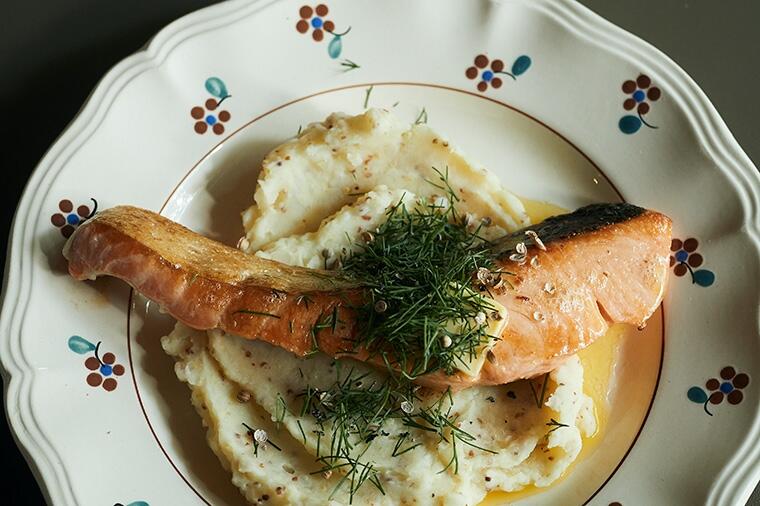 いつもの鮭のソテーにハーブとスパイスをプラスするだけで、華やかなひと皿に。粒マスタード入りマッシュポ...