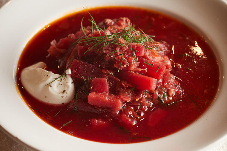 ロシアの定番スープであるボルシチは、牛肉の旨味とビーツの鮮やかな色味が特徴です。ボリュームもしっかり...