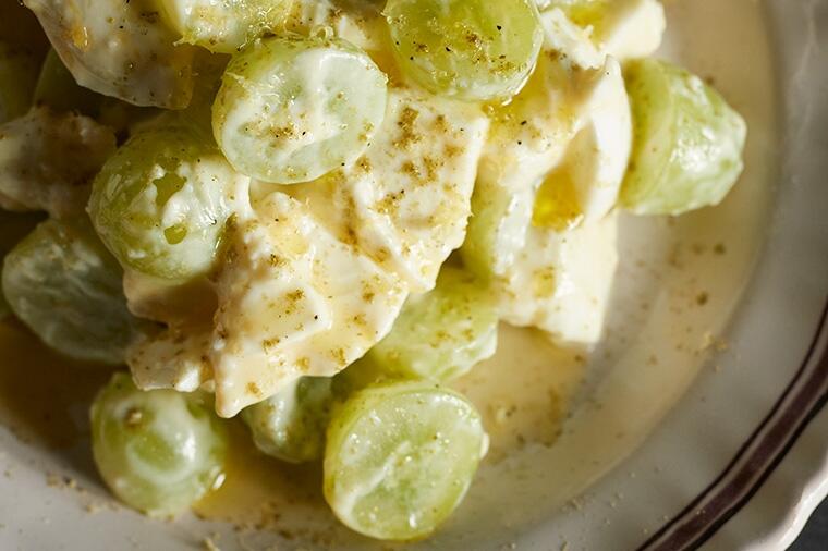 フルーツのフレッシュな甘さと白味噌の甘さが調和した一品。ミニモッツァレラを使っても可愛らしく、オード...
