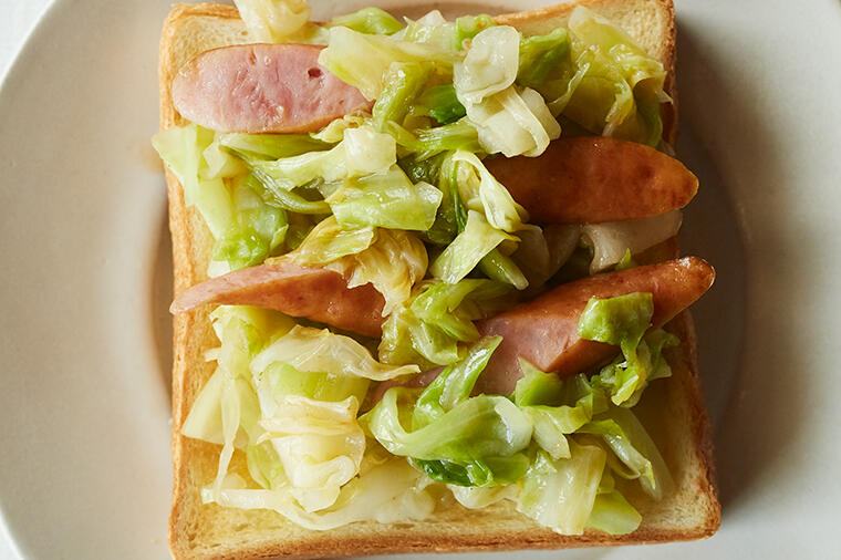 キャベツをザクザク切ってソーセージと一緒に炒め、ウスターソースで味つけ。ウスターソースはスパイシーな...