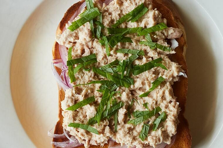いつものツナマヨを和風にアレンジしました。青じその香りと、隠し味に醤油。ごく薄く切った紫玉ねぎのシャ...