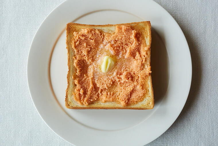 旨味と塩気のあるたらに、おろしにんにくとバターを混ぜて、パン一面にたっぷり塗ってオーブントースターで...