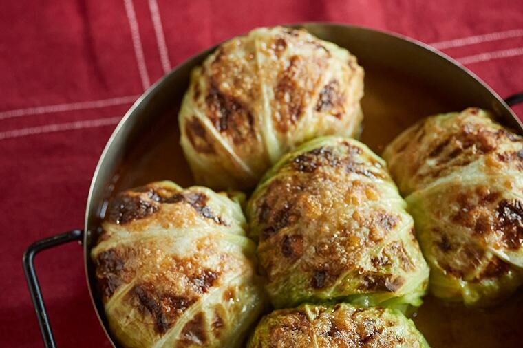 真ん丸な形の焼きロールキャベツはわが家の定番メニュー。今回は挽き肉だねに数種類のスパイスをたっぷり入...