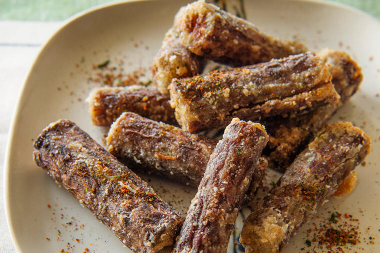 薄味で煮たごぼうに片栗粉をつけて揚げた、斬新な一品。表面を香ばしく揚げれば出来上がり。せっかく目の前...