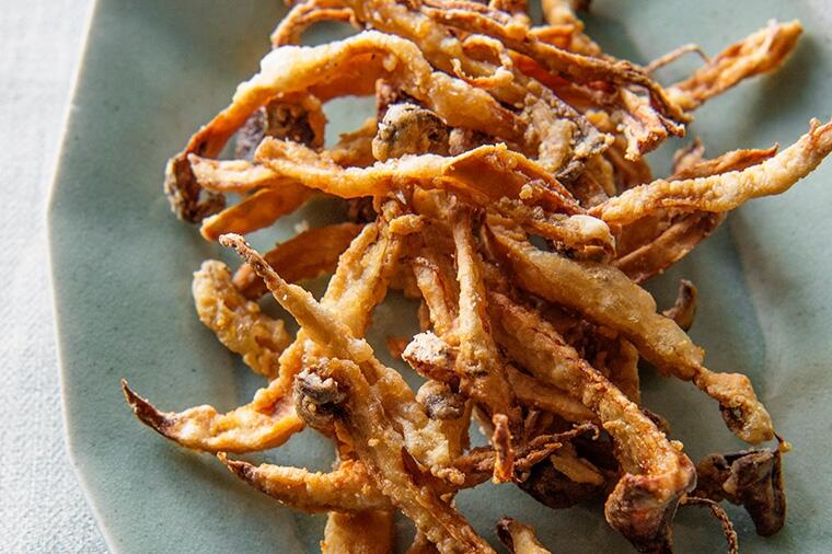 半干しにしたきのこは旨味がギュッと凝縮。それを揚げて美味でないはずがない!せっかく目の前に揚げ油があ...