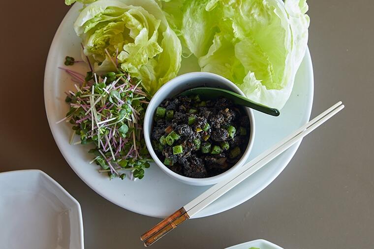 練り胡麻とすり胡麻をダブルで使った、黒胡麻づくしの肉味噌をシャキシャキレタスにのせてパクッといただき...