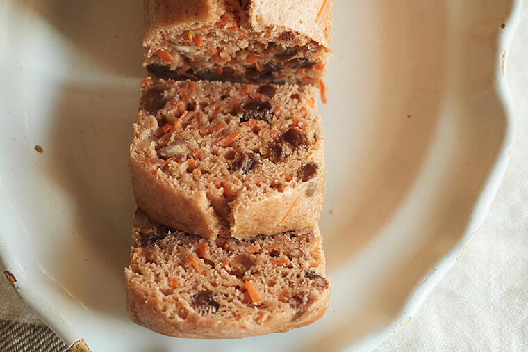 シナモンを始めとした香りの良いスパイスが効いています。にんじんだけでなく、クルミも生地に混ぜ込むこと...