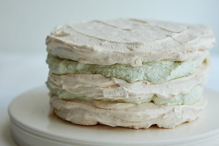 サクサクと軽い食感のメレンゲの焼き菓子と、ふわっとした食感の煎茶クリームを重ねた、軽やかな食べ心地の...