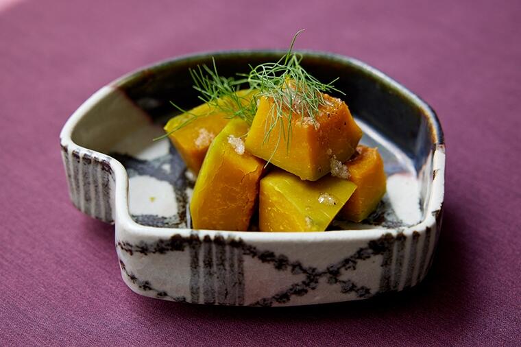 クミンシードの香りをまとったかぼちゃを、オレンジとオレガノのドレッシングで和えます。かぼちゃの甘さと...