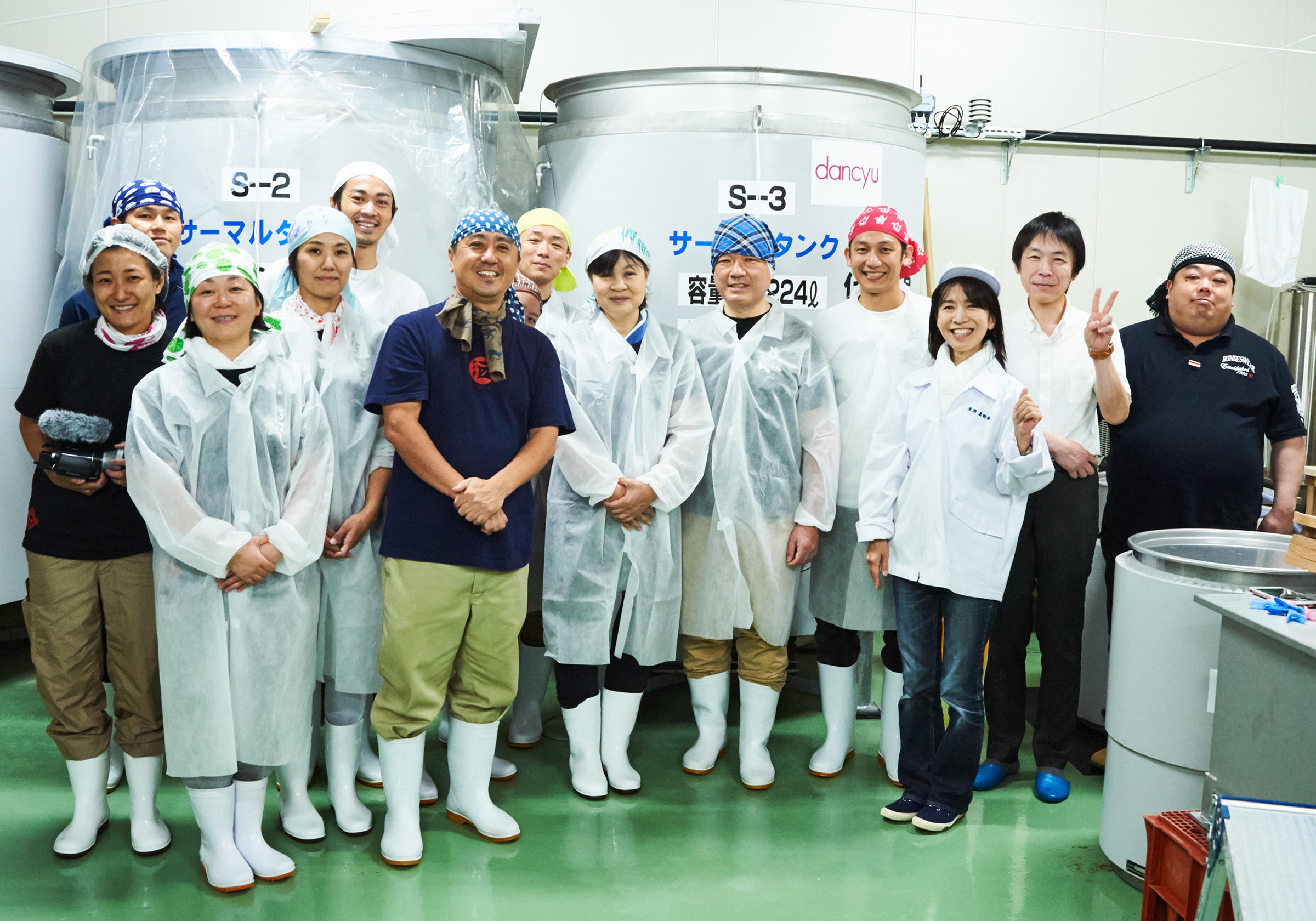 今回、d酒の設計をお願いしたのは、dancyuの日本酒特集でおなじみの松崎晴雄さんと藤田千恵子さん。30年近く日本酒業界を見てこられたおふたりが、「いま、改めて日本酒を知る」という原点に立ち、日本酒のおいしさってなんだろうと、dancyuのweb編集長である江部拓弥さんと一緒に考えた。さらには「日本酒うさぎ」の原口起久代さん、「アウレリオ」の大本陽介さん、「日和」の望月清登さんたち料理人。さらに記録映像を担当した映画監督の石井かほりさん、フォトグラファーの当山礼子さん、飛び入り参加の台湾の日本酒バイヤーKENNYさん、そして伊勢丹新宿店和酒アシスタントバイヤー倉友桐さんと私、編集者の神吉佳奈子。総勢11名が参加。杜氏の中野徳司さん、学校蔵の蔵人のみなさんの大いなる助けを受けて、あたふたしながらd酒を造ったのだ。
