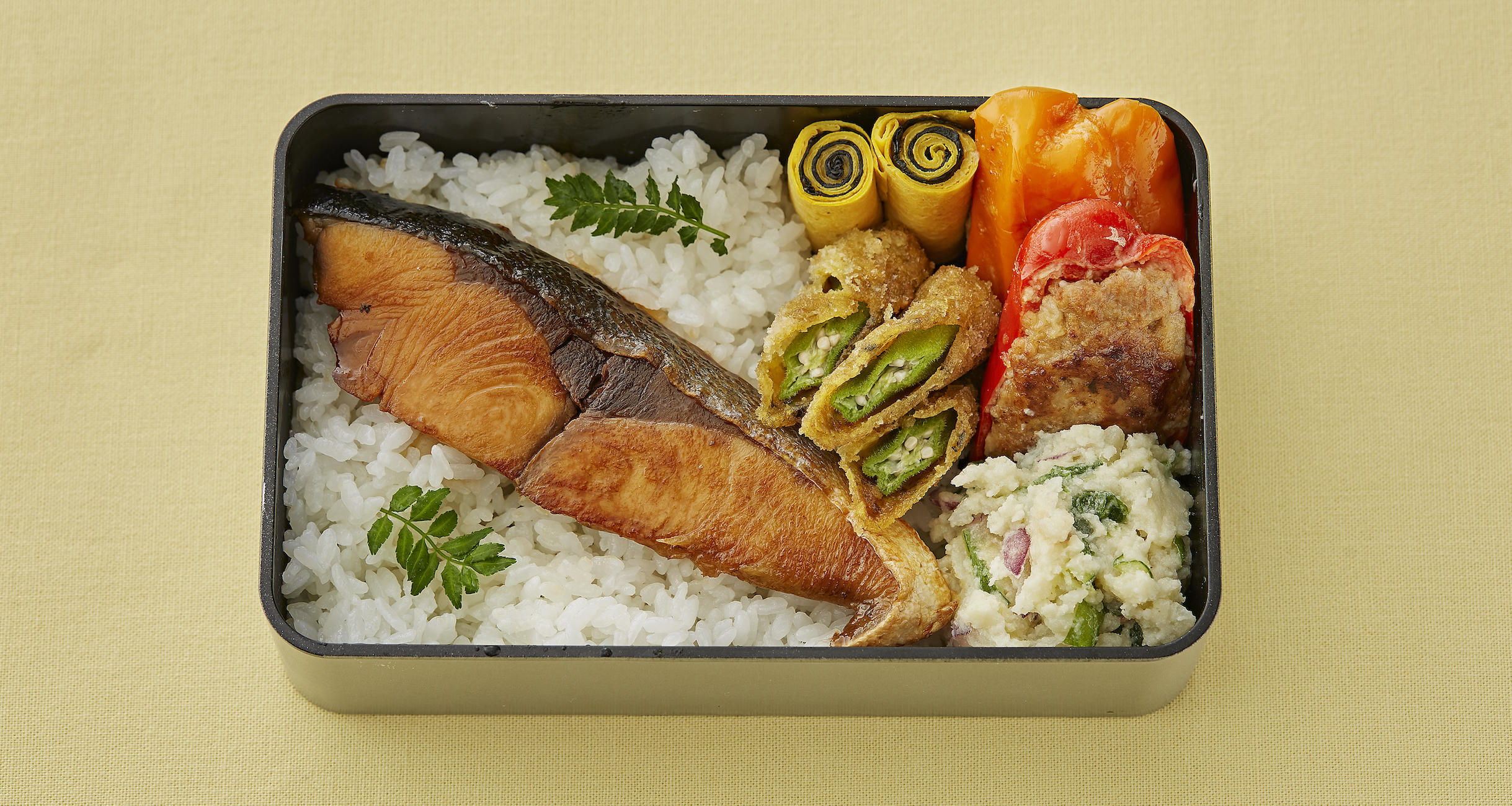 味が混ざるのを防ぎたいときは、レタスなどの野菜を仕切り代わりに使うと、見た目がグッとよくなるそうだ。このような実用的なアイデアを取り入れつつ、「つくる人が楽しむことも大切です」と速水さんは言う。