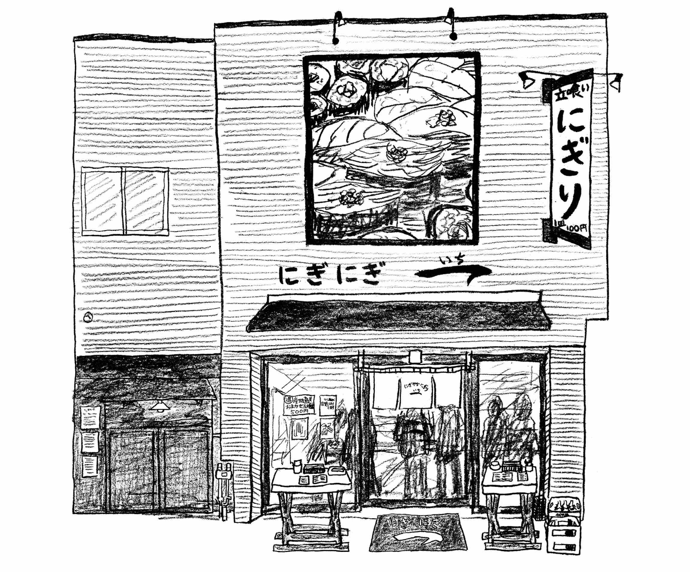 思い立ったらすぐ行ける。好きなように食べられる。みんなでゲラゲラ笑い合える。町に佇む「町鮨」はローカルの宝物。一貫目は私、井川直子の好きな町鮨へ。二貫目からは、町鮨を愛する人に、お気に入りの一軒へ井川を案内してもらいます。今回は料理家の瀬尾幸子さん行きつけの立ち食い鮨「にぎにぎ一 西荻本館」です。