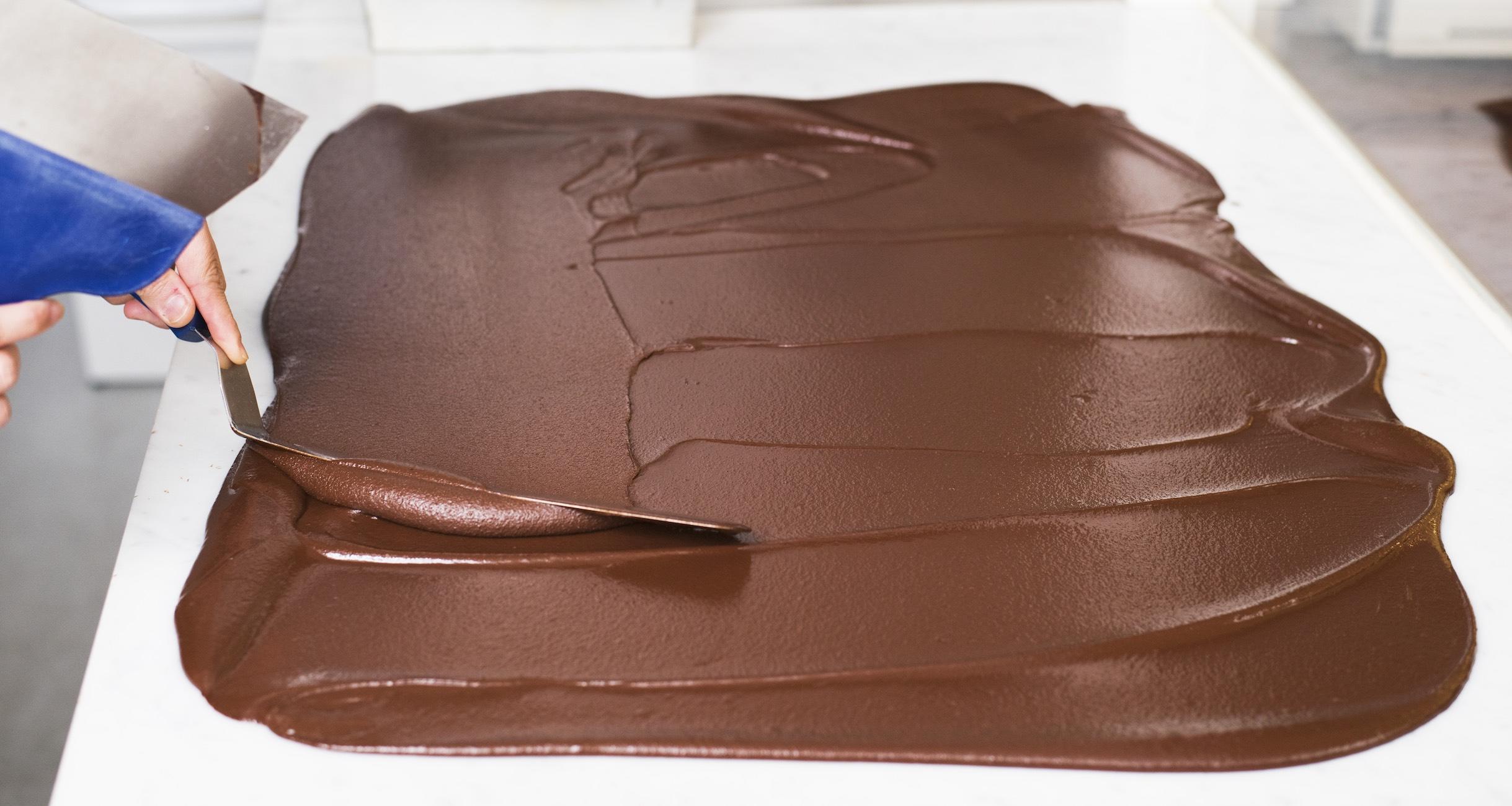 チョコレートを型に流し込み、冷蔵庫で冷せば、ビーン・トゥ・バー・チョコレートが完成します!