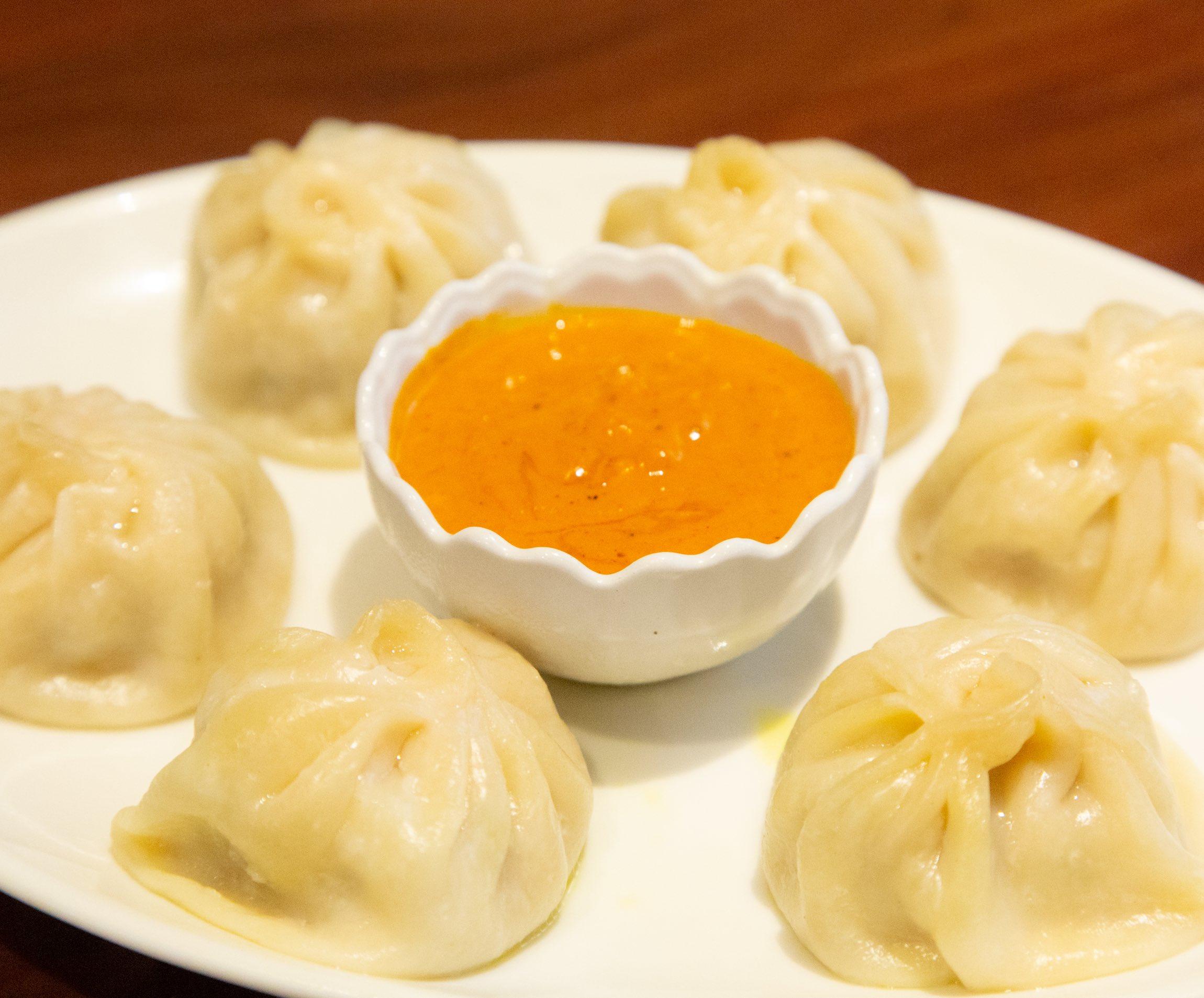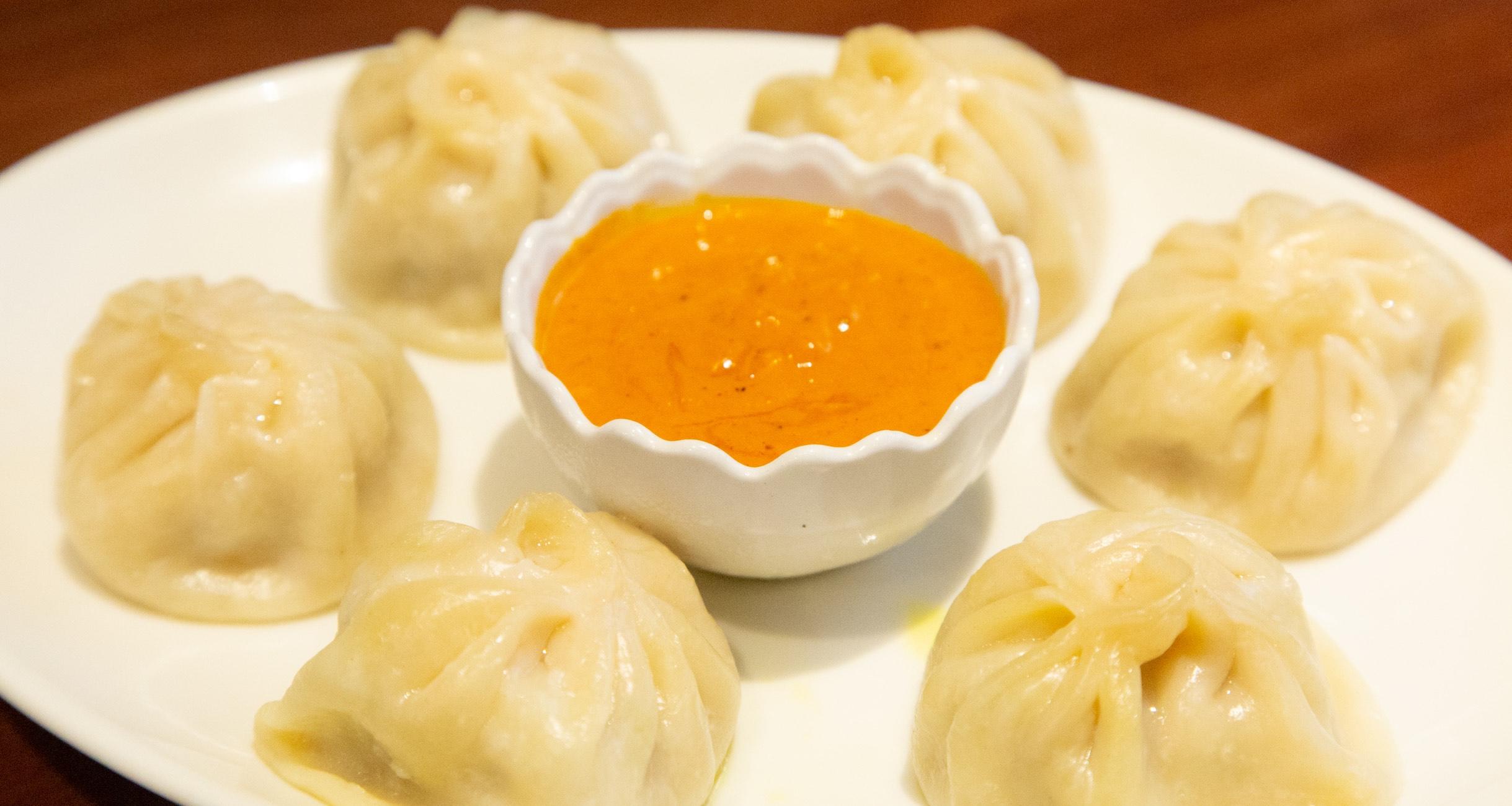 店名にもなっている“モモ”は、ネパール餃子とも呼ばれる定番料理。小籠包のような形をしていて、中身はおもに鶏肉のミンチと玉ねぎ。さっぱりとしていて重たくないので、パクパクと軽快に食べられる。たれは濃厚なので、ちょっぴりつけるだけで十分おいしい。