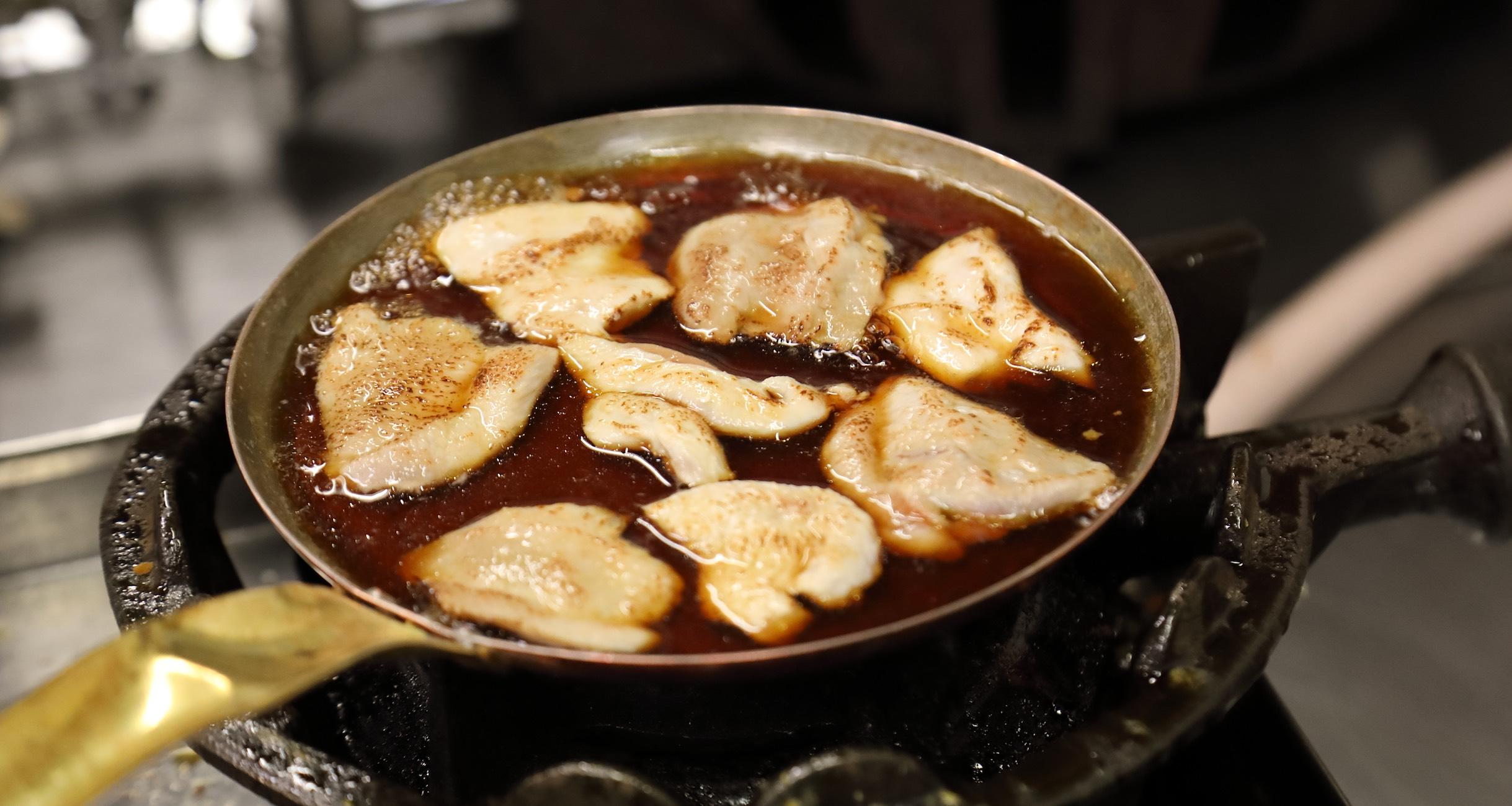 親子丼に使う醤油は、ヒゲタ醤油の「本膳」。1988年頃、親子丼をファストフードではなく、素材選びに心を砕いた鳥料理として提供しようと、先代は試行錯誤を重ねていた。素材の味を活かせる醤油を探していた矢先に、発売されたのが「本膳」だった。