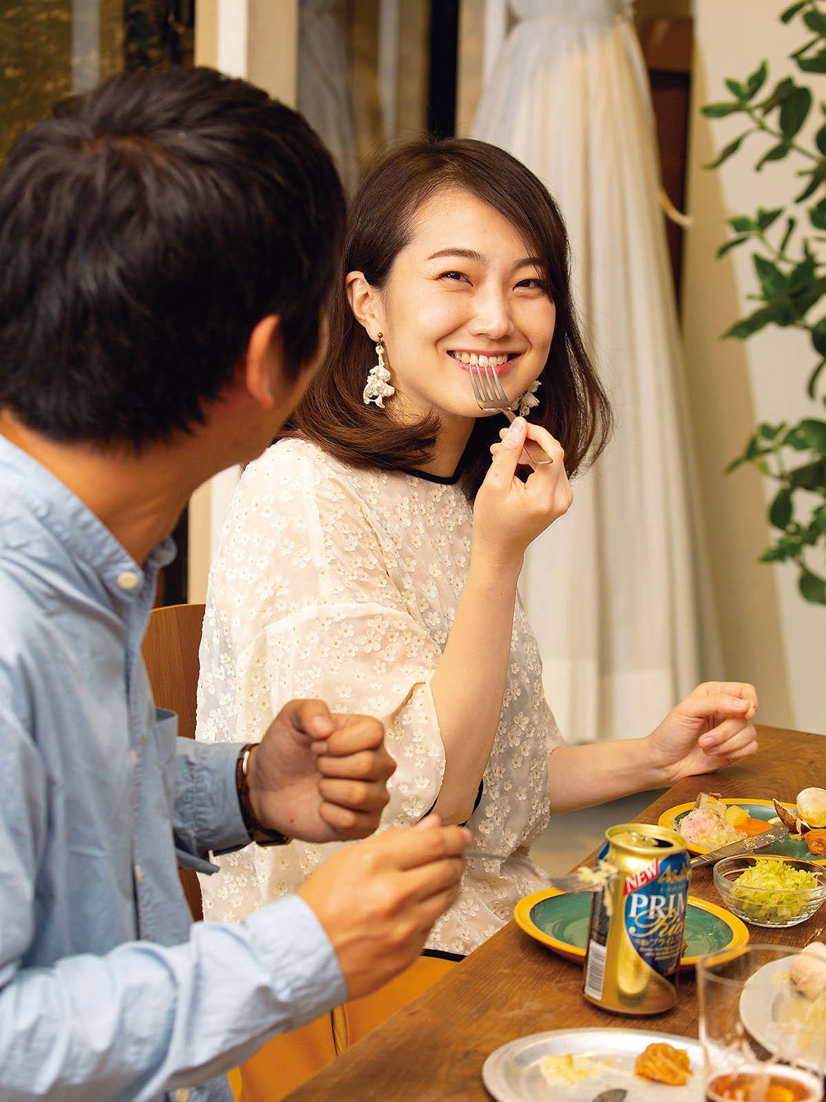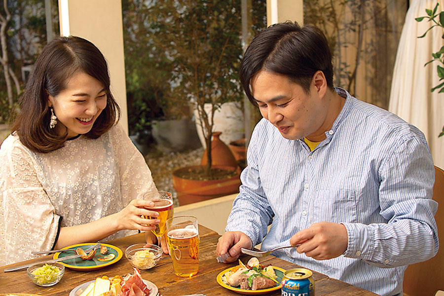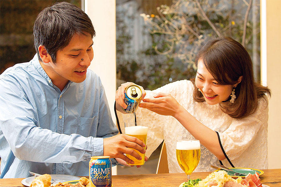 - 暮らしと相性がいいお酒なんだよね、プライムリッチは。肉、魚、野菜……。洋風、和風、中華、エスニック……。食べ物との組み合わせの幅が広いし、ひとりでもふたりでもみんなでも、いろんなシーンや飲み方でおいしさを味わえる。こういう飲み物って、なかなかないんじゃないかな。
