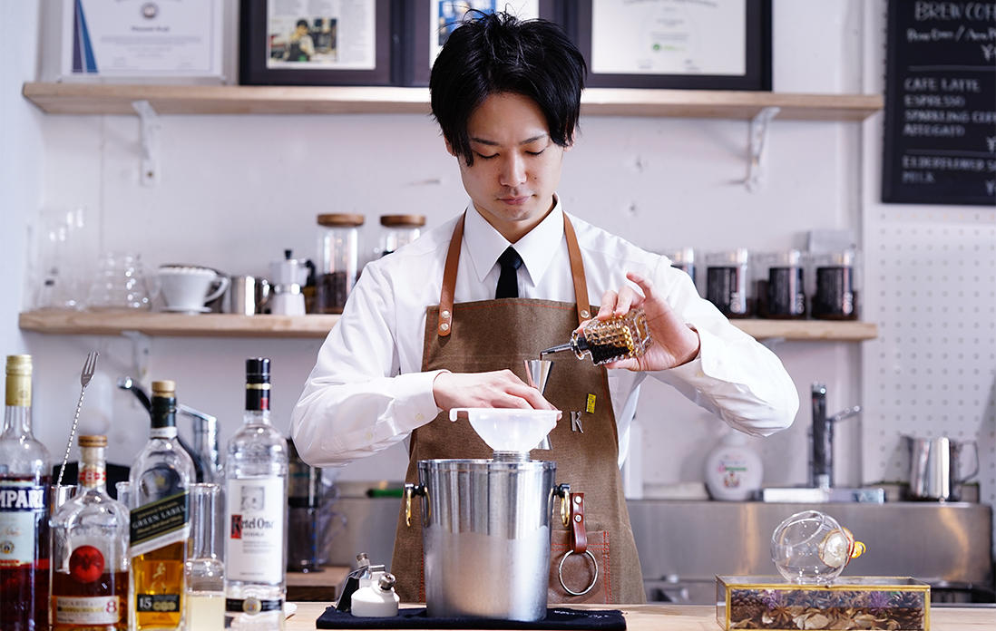 コーヒーカクテルが盛り上がる状況に注目するソニア・カオさんの案内のもとに向かった「ラダーコーヒー シャポー船橋店」。店長で、「JAPAN COFFEE IN GOOD SPIRITS」で3位に輝いた宮本陽介さんは言う。