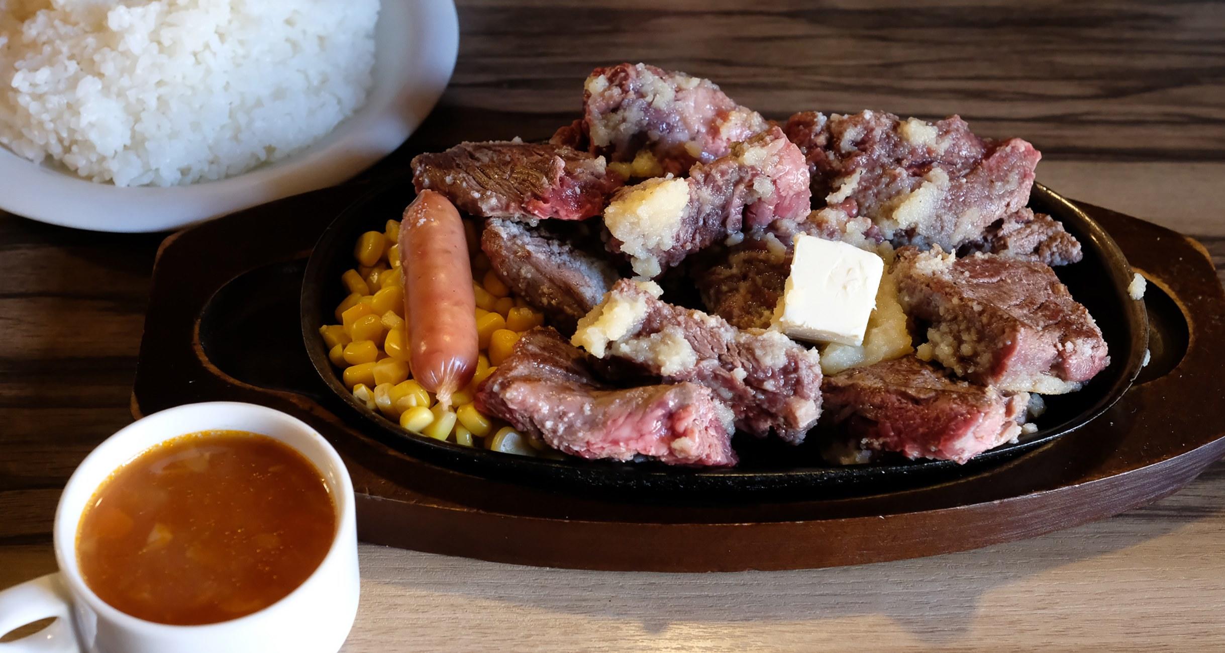 肉はとても柔らかいけれど、脂っぽさはない。だから、ぺろりといける。そして何よりリーズナブル。“デンジャーステーキ”は1ポンド450gで、ライスとスープがセットになって2,500円。この価格でこの味と量は、文句のつけようがない。