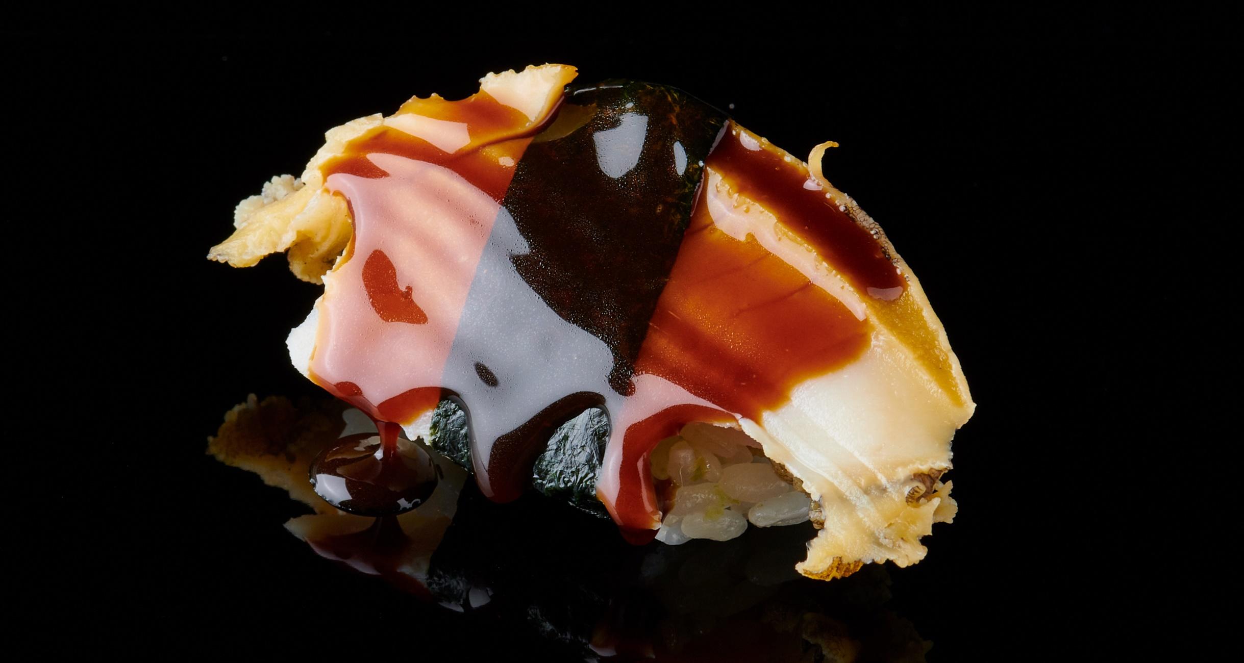 夏の鮨種の王様、鮑。生もいいが、「㐂寿司」の江戸前の伝統の仕事といえば、煮上げた鮑にツメを塗り、海苔をひと巻して供する鮑の握りだ。酒と塩と水でゆで、鮑本来のエキスの旨味を煮含めた鮑の歯ごたえ、そしておいしさといったら……!