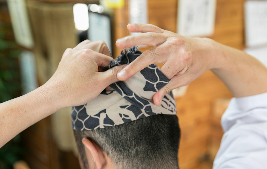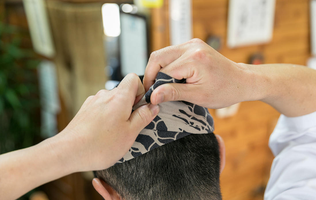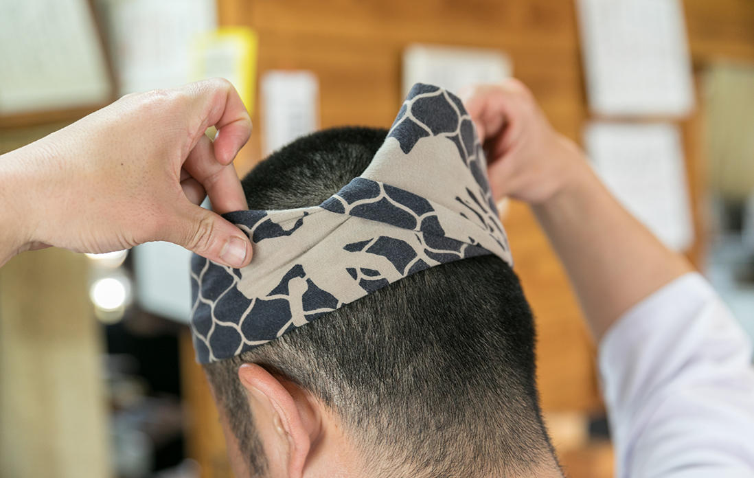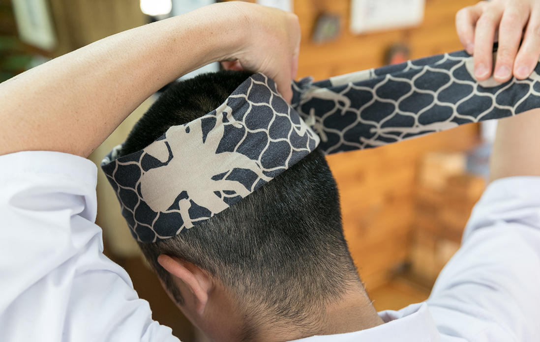 「やっぱり頭に巻くと気合が入るんですよ。だから開店時刻になると巻いて、店が終わるとサッと取っちゃいますね」