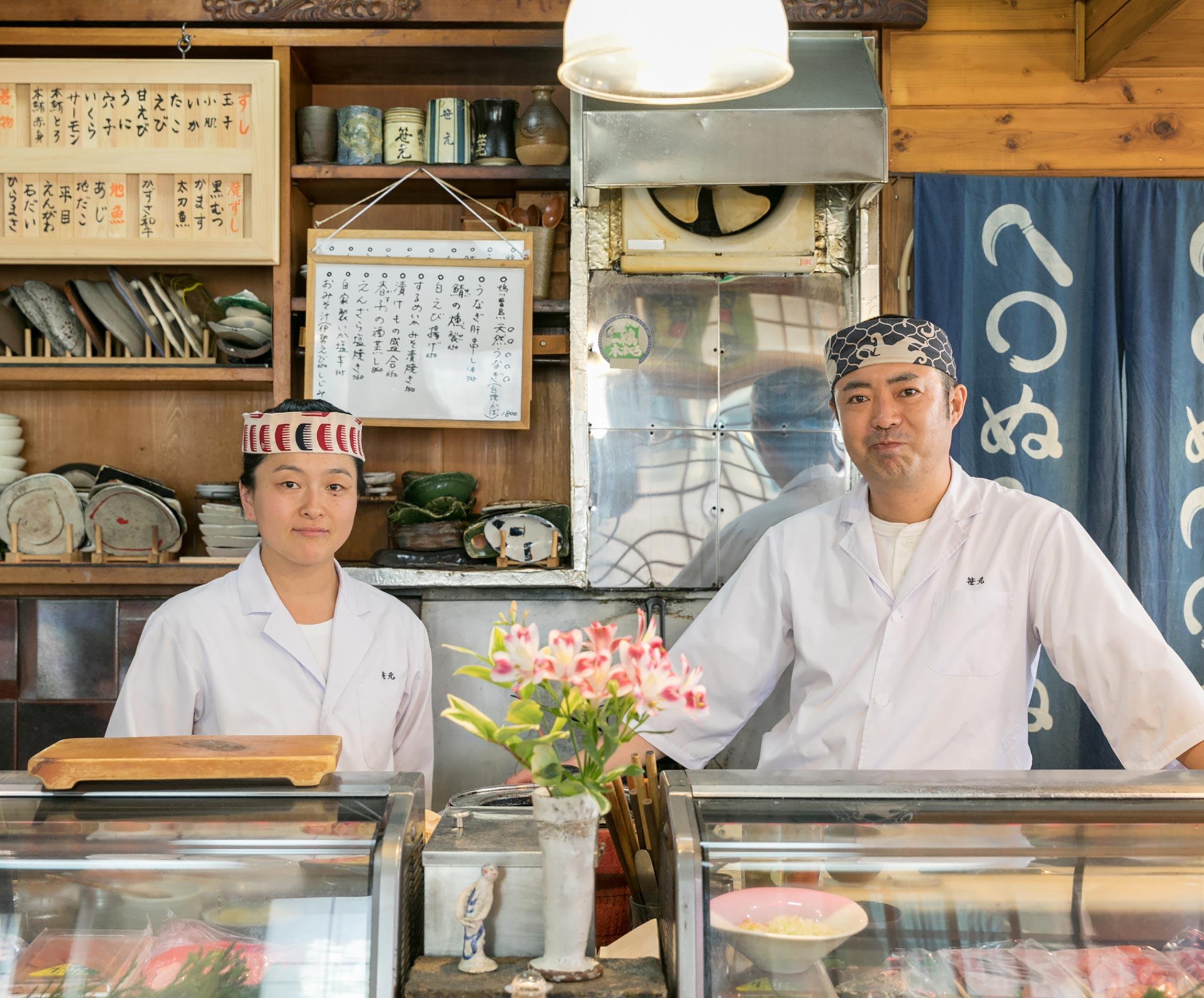 まずは咲樹さんの経歴から紹介しよう。船と海が好きで、高校は船の運転技術を学べる国立の海上技術学校に進学した。そこを卒業し、さらに大きな船の免許が取れる海技大学校まで進んだのだが、ちょうど店で働いていた職人さんが辞めることになり、「やってみないか」と初代からスカウトを受けたという。