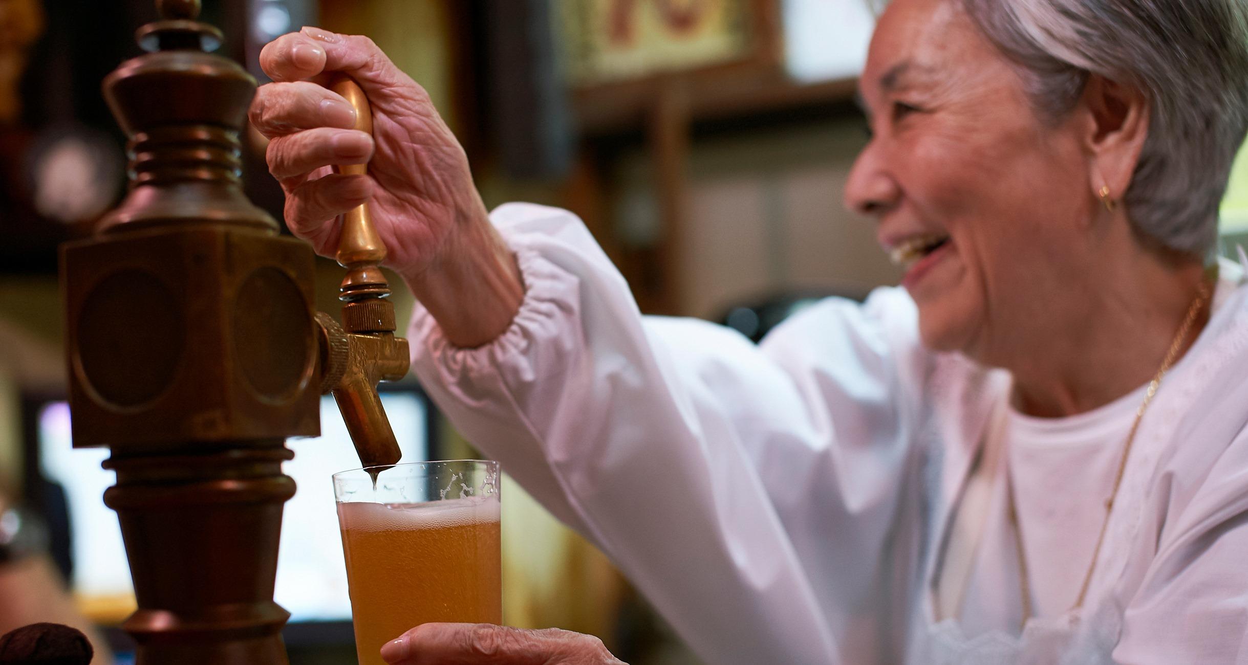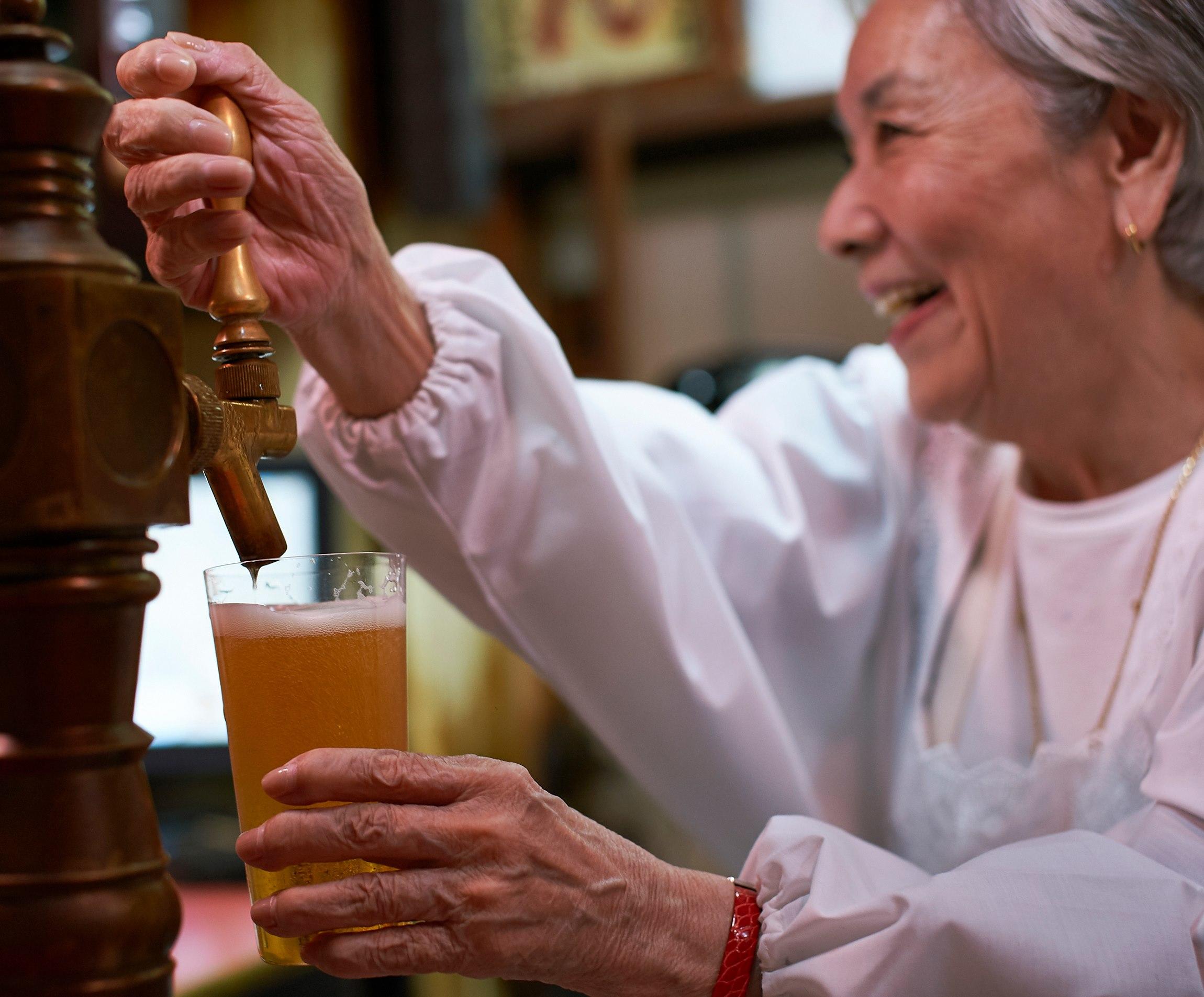 そして、2大ビール注ぎ名人の店として東京の2店。八重洲「灘コロンビア」(1993年に店主の新井徳司名人が逝去。閉店)と浅草の「正直ビヤホール」、鈴木澄子さん(71歳)の店だ。
