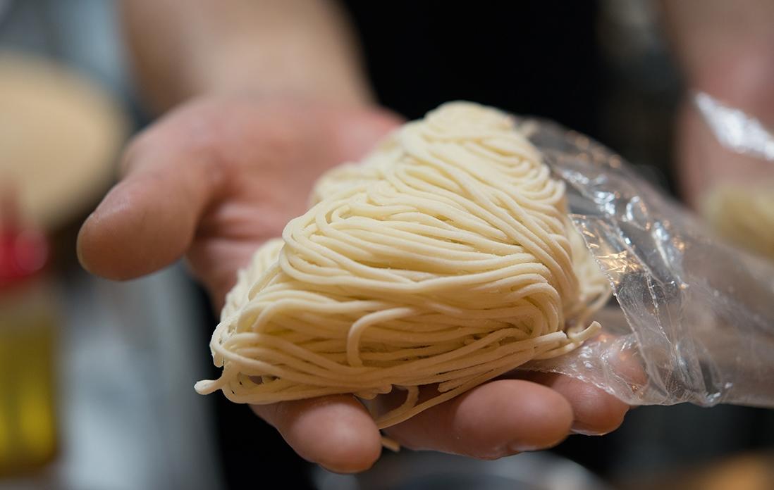 「玉子もかん水も使わないそうめんのような麺が理想なんです。かん水を入れるとコシは出るんですが、アルカリ性の香り、いわゆるアンモニア臭も出てしまいます。僕は、ふんにゃり柔らかく、たれに寄り添ってくれる麺がよかったんです」