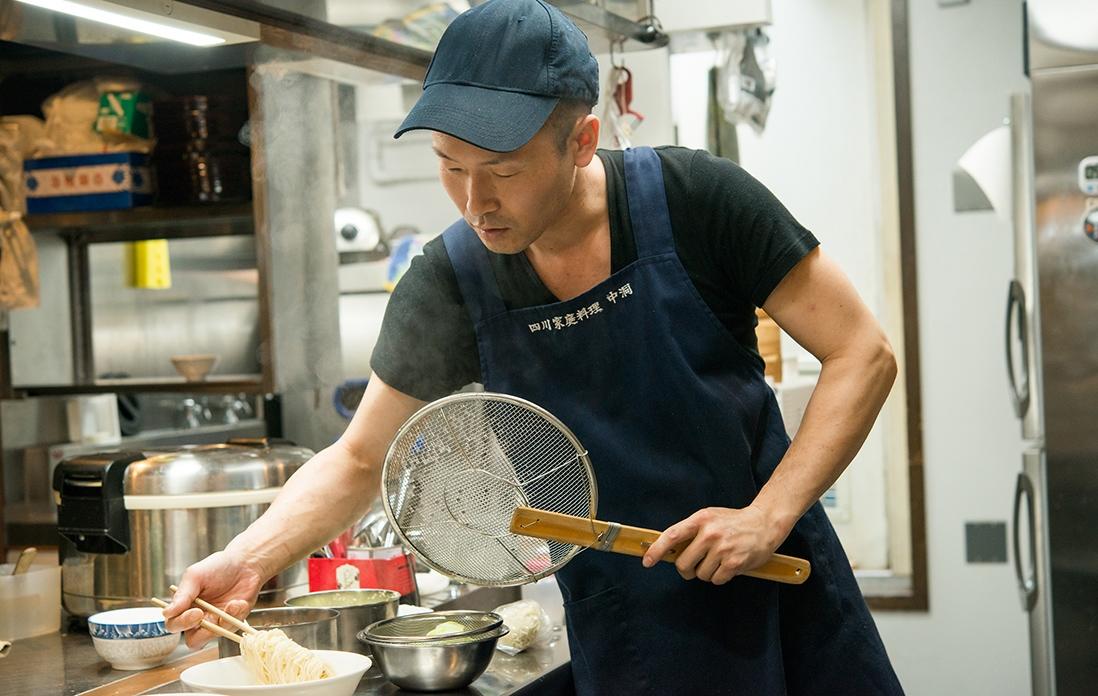 中洞さんがこの料理を自分なりに再現するのに必要なのは、すっきり辛いたれに寄り添う麺だった。
