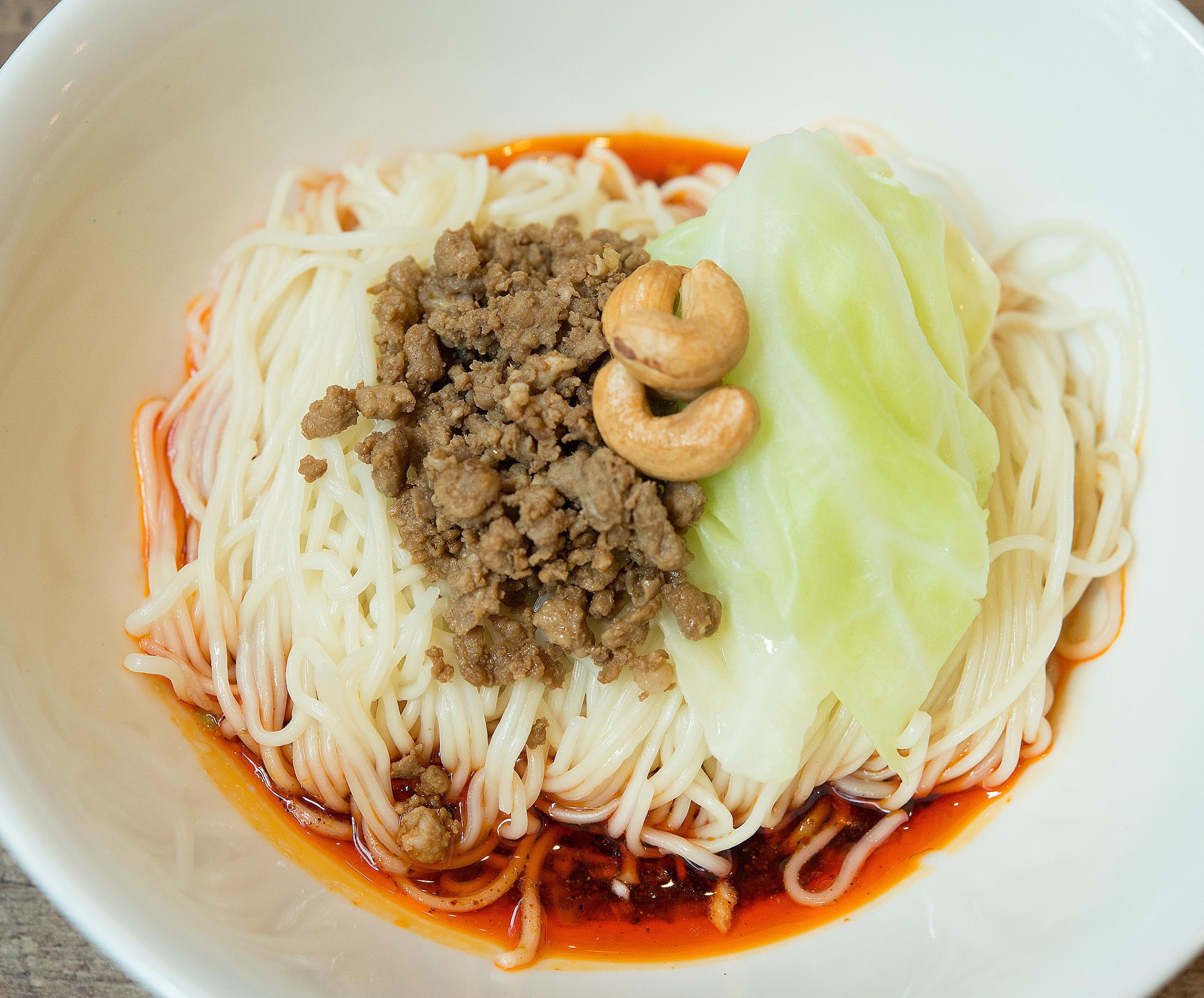 「四川家庭料理 中洞」店主の中洞新司(なかほらしんじ)さんは、語学と料理のために四川省に留学していたときは、ほぼ毎日麺料理を食べていた。「黒酢と辣油のサンラーメン」(三皿目で紹介)と共にはまったのが「素椒雑醤面(スゥジャオザージャンメン)」だった。