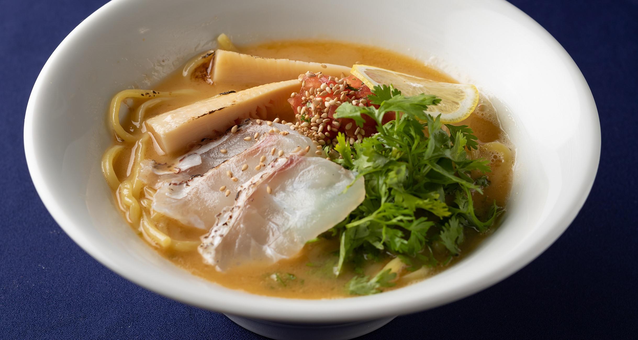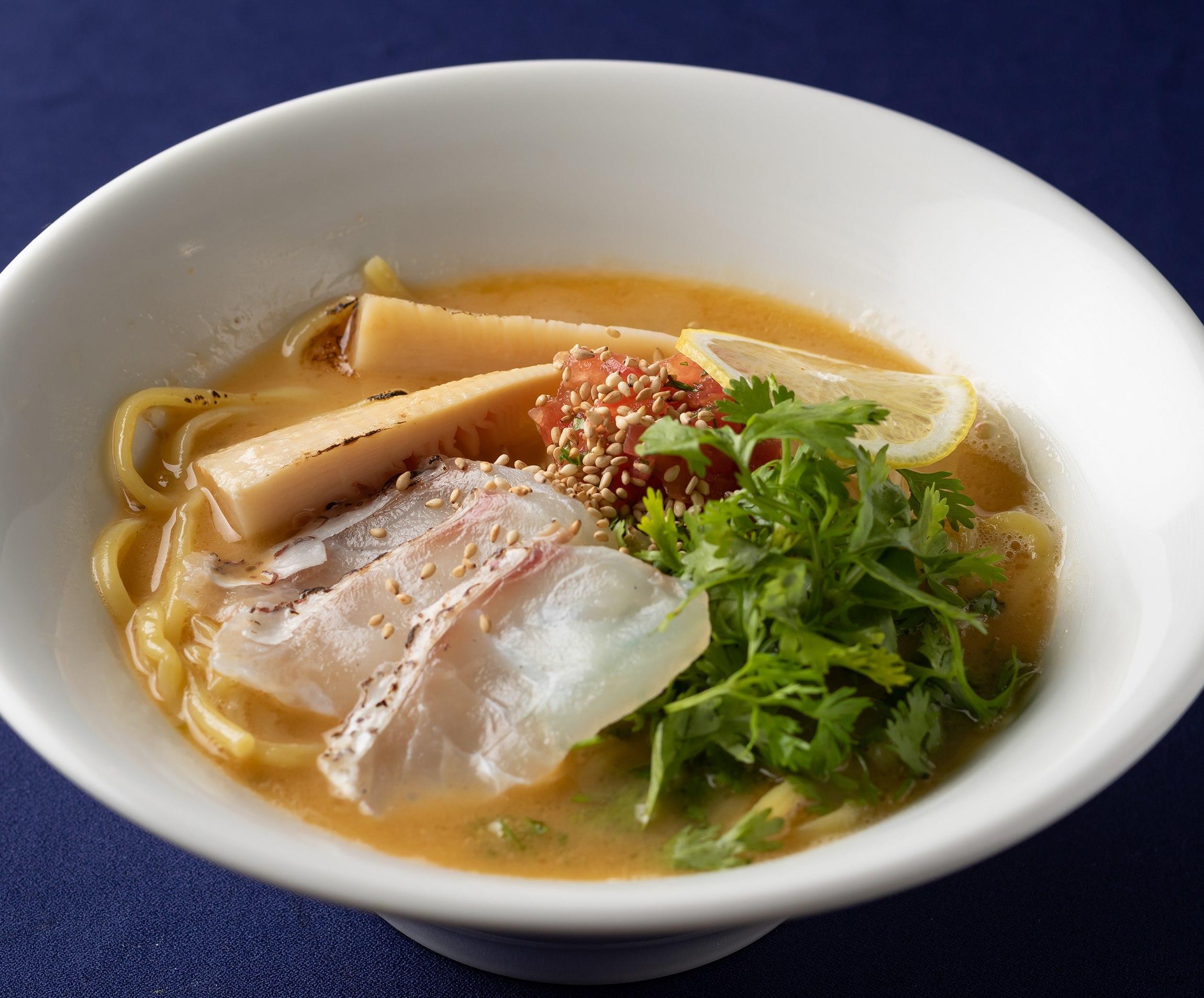 鯛ラーメンのバリエーションといえば“あっさり”と“こってり”の2パターンに、“つけ麺”と“油そば”が加わるのがせいぜい。ところが、この店では、“鯛の担々麺”や“鯛のジェノベーゼ”“タイ風鯛ラーメン”(ダジャレか?)といった、見たことも聞いたこともないようなニュータイプの鯛ラーメンが季節ごとにじゃんじゃんお目見えする。