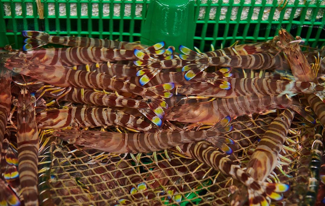 車海老の特徴である、尾の鮮やかなブルーが目に留まる。