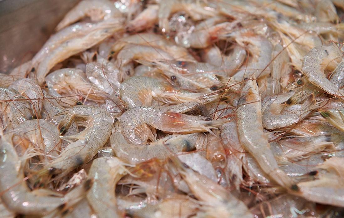 こちらは生の芝海老。かつては東京湾で大量に獲れ、江戸前を代表する魚介だった。