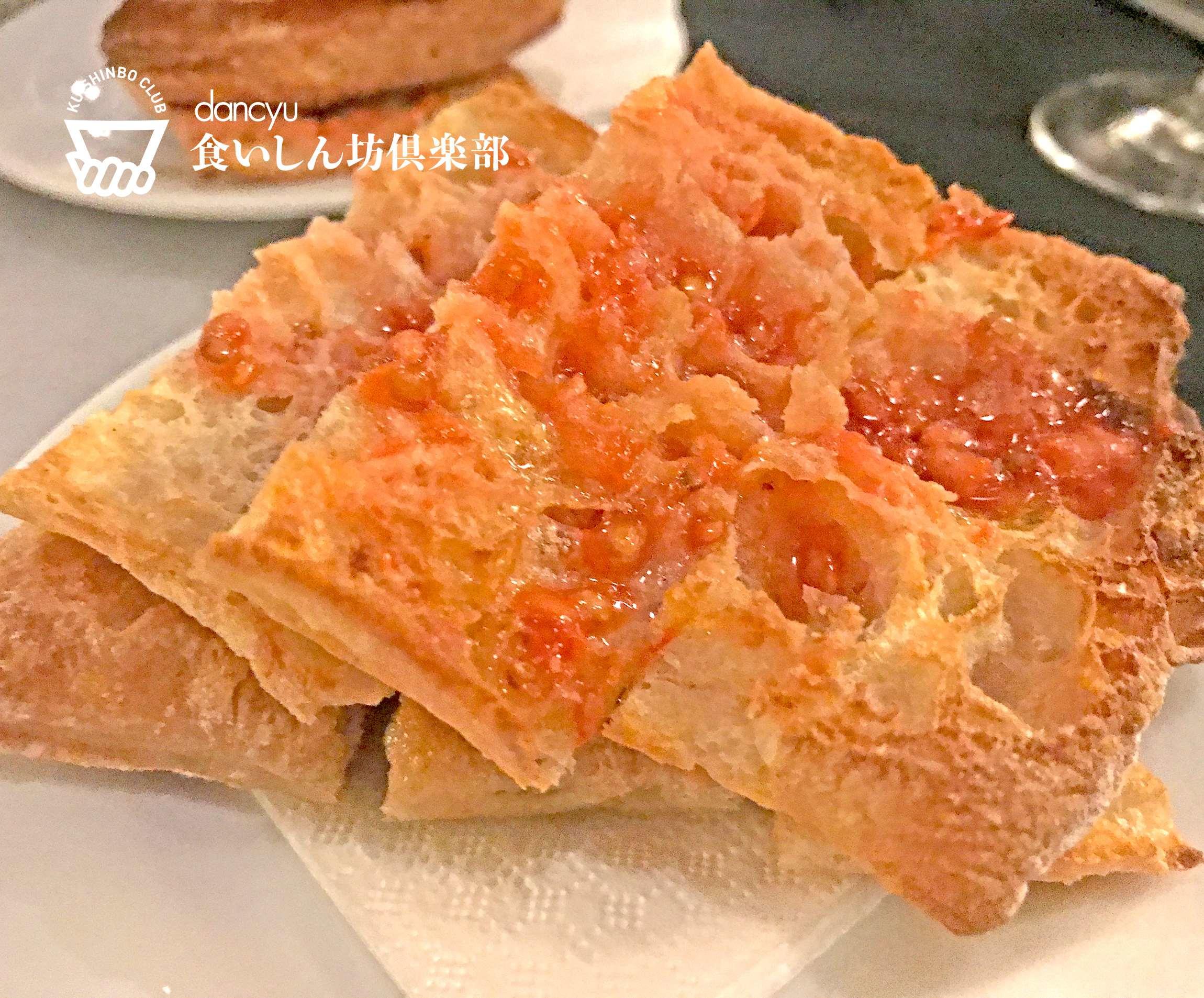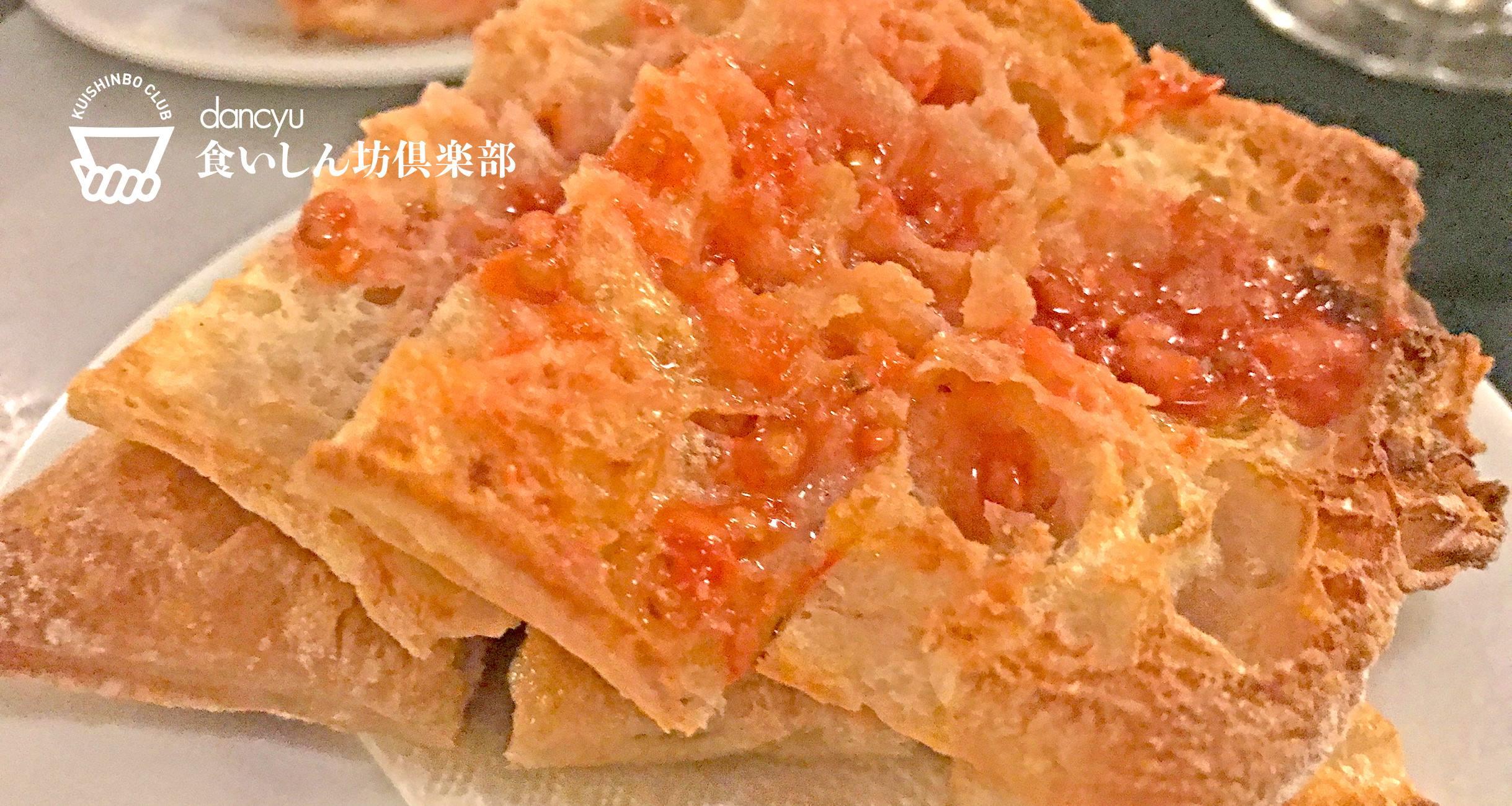 ちなみに、写真は僕が大好きなパンコントマテ。スペイン・カタルーニャの郷土料理で、パンにトマトをこすりつけて、オリーブオイルと塩をかけるだけ。素朴だけれど、毎日食べたくなる。日本人にとっての味噌汁のようなものだ(味噌汁と同じようにつくる人によって味が異なる)。そんなフツーの美味しさが楽しい、と思う。