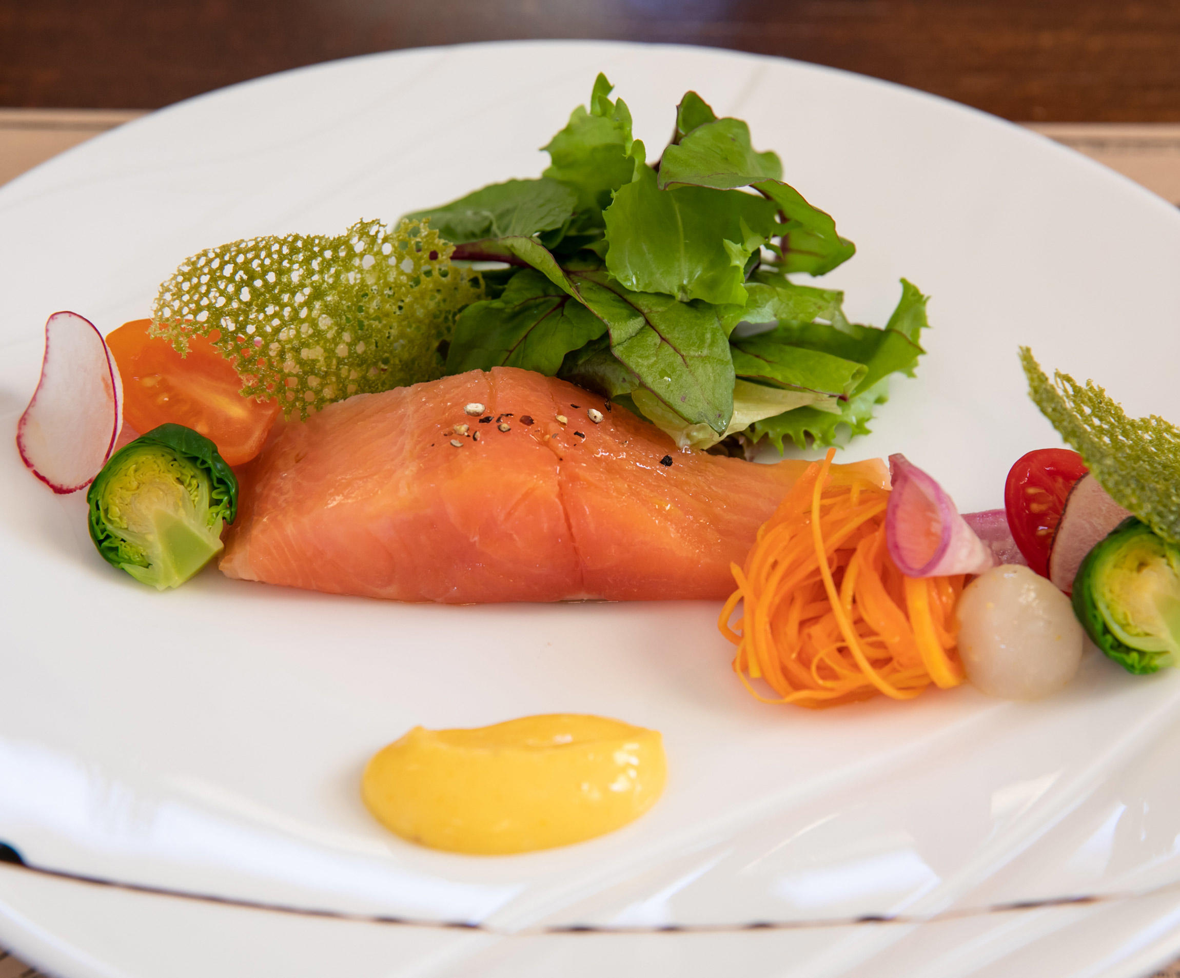 「メインや前菜など、基本的にはシェフに料理を任せていますが、なかには私がつくっているものもあるんです。自分で育てた木苺は、よーく熟させてからコンポートピューレにして、シャーベットにしました」