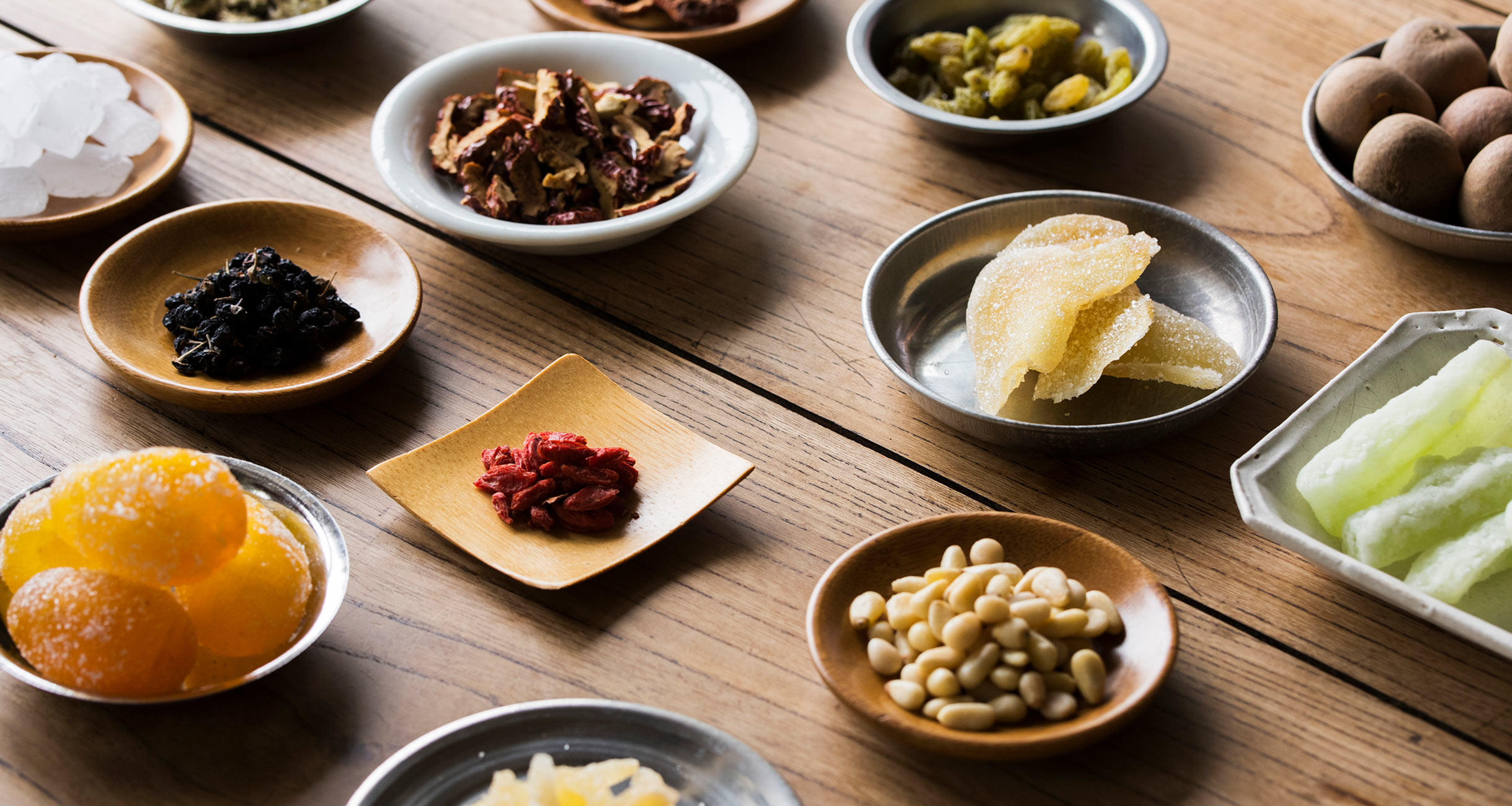 「八宝茶に使う食材の組み合わせは自由で良いんです。健康を考えて漢方を集めるのも良し。生姜や松の実を使って味わいを重視するのも良し。好みの食材に湯を注げば、あなただけの八宝茶ができ上がります」