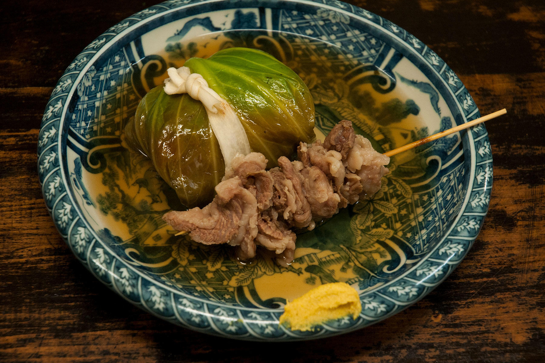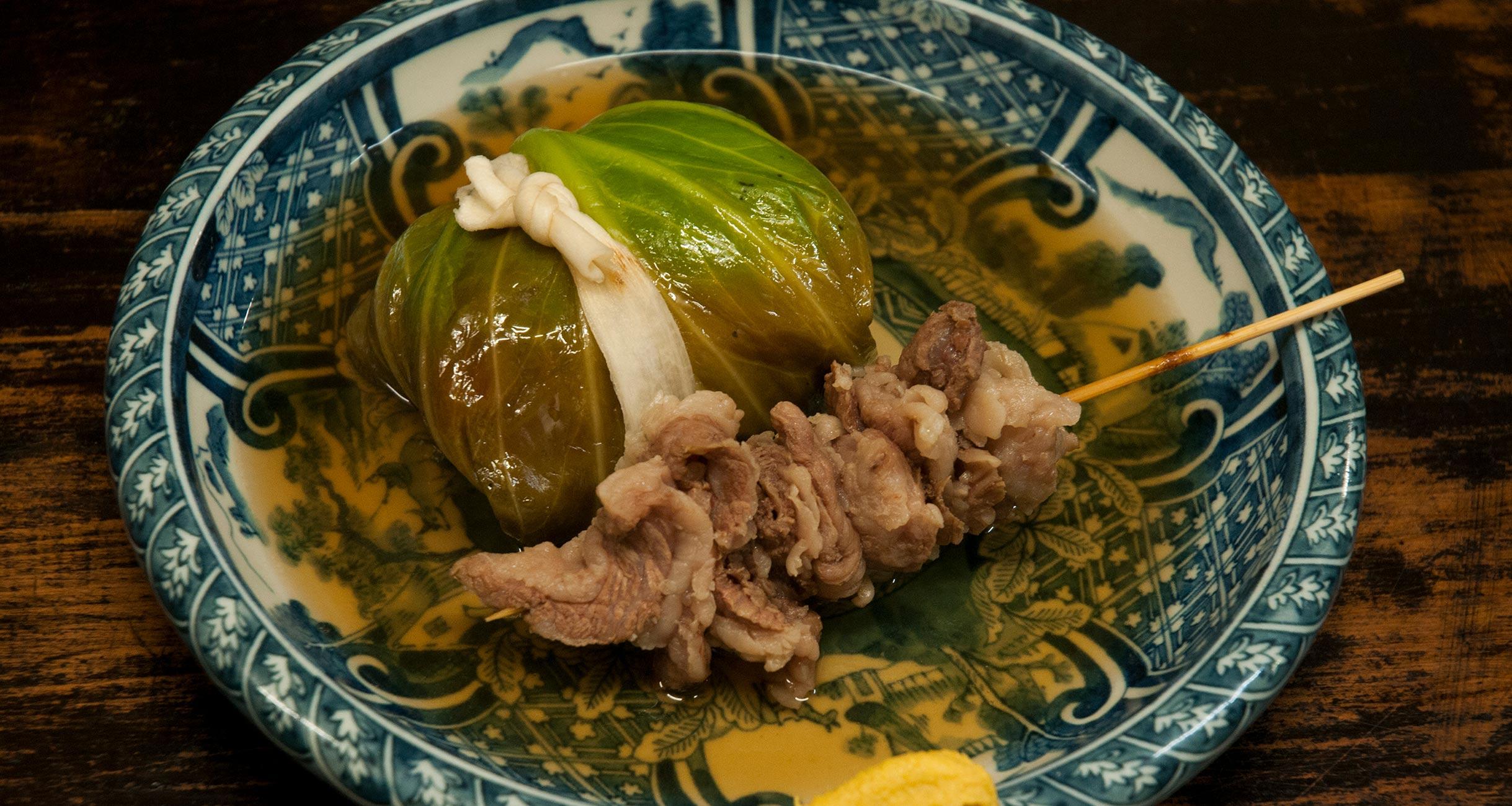 まずは、店主の野村英樹さんから「おでんのつゆを始めにどうぞ」と、つゆのみが供され、続いて、茶色く煮込まれた物体が次々に盛られてく。