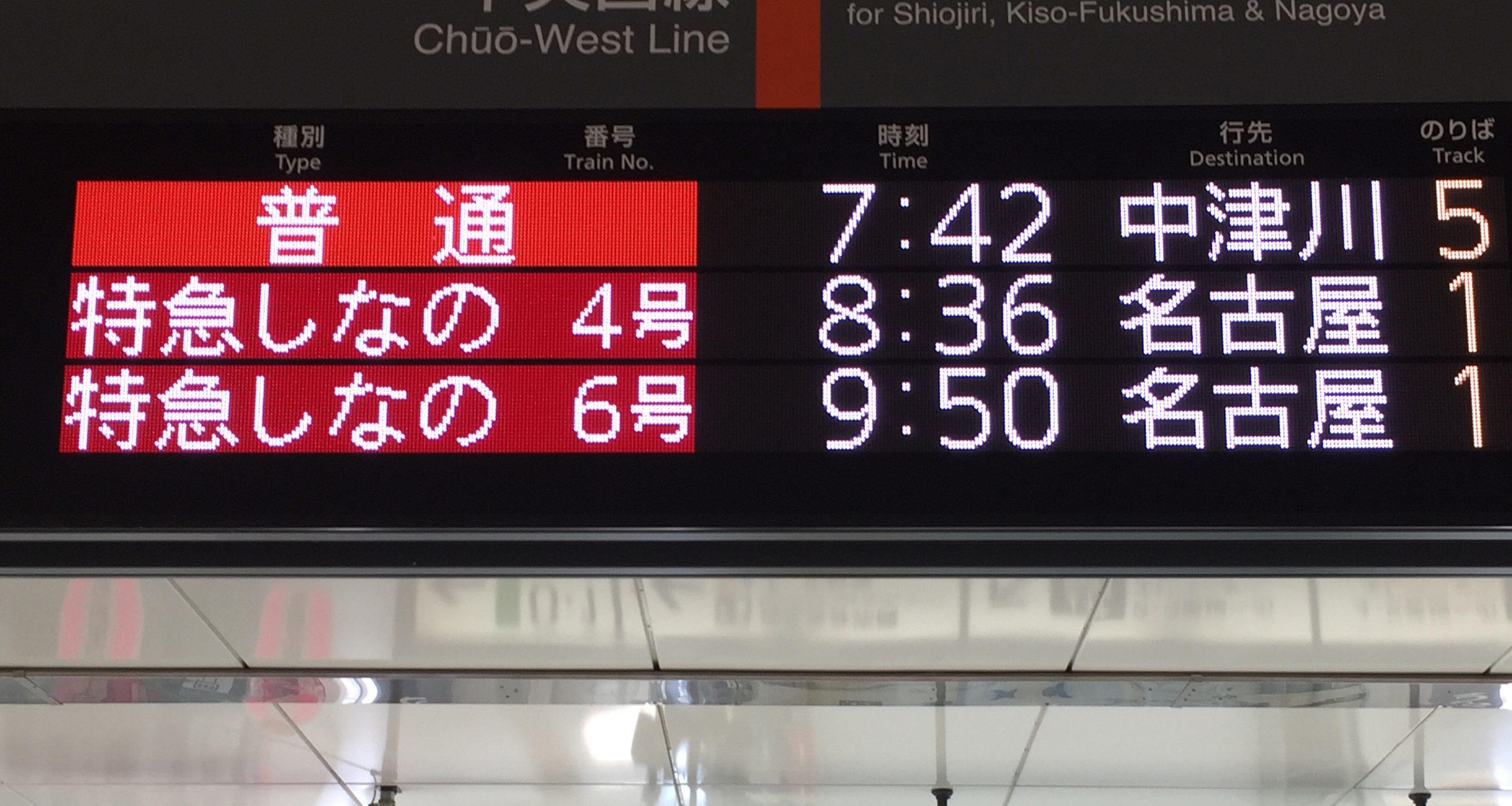 うつらうつらするうちに、2時間32分が経っていて、終点の中津川着。10時20分発の中央本線快速に乗り換え、約1時間半で名古屋に到着した。東京からやって来るカメラマンの中川カンゴローと喫茶店で合流すべく、いったん改札を出る。ここから先は乗り換えが続いて、結局、思うように休憩時間が取れないのである。