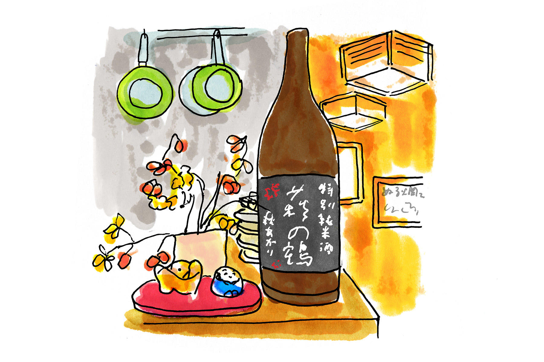 酒をもらおう。宮城の萩の鶴。特別純米の秋あがり。軽く甘めでしっとりした印象の酒で、マグロの漬けに合う。