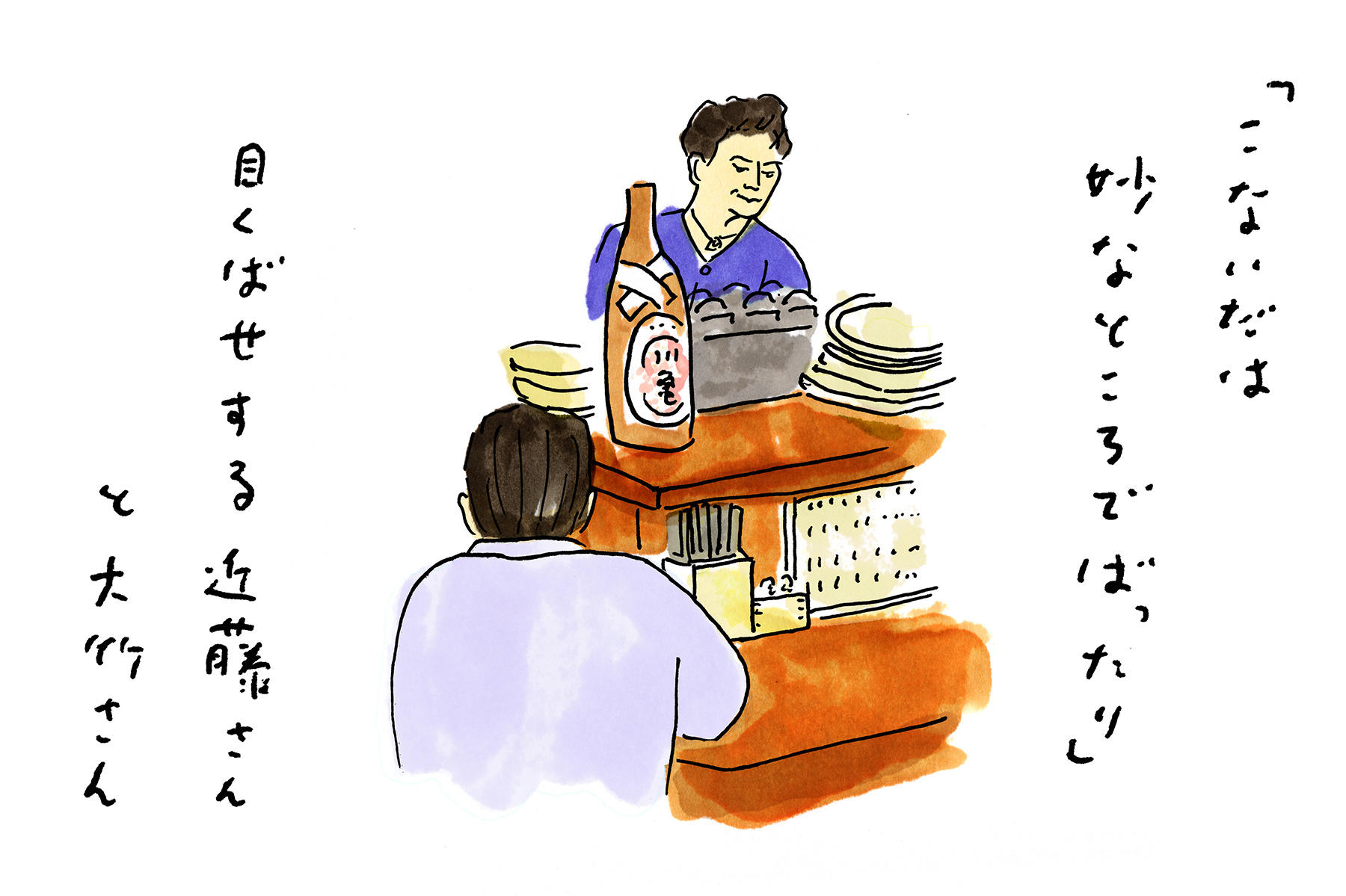 近藤さんは一見して強面だ。黒のダボシャツが似合うから、とっつきにくい感じを持つ人もいるかもしれない。が、実は心根の優しい人である。いつぞやは、真っ昼間のもつ焼き屋でばったり出くわしたことがあるのだけれど、そのときも、とてもいい笑顔で声をかけてくれたものだ。