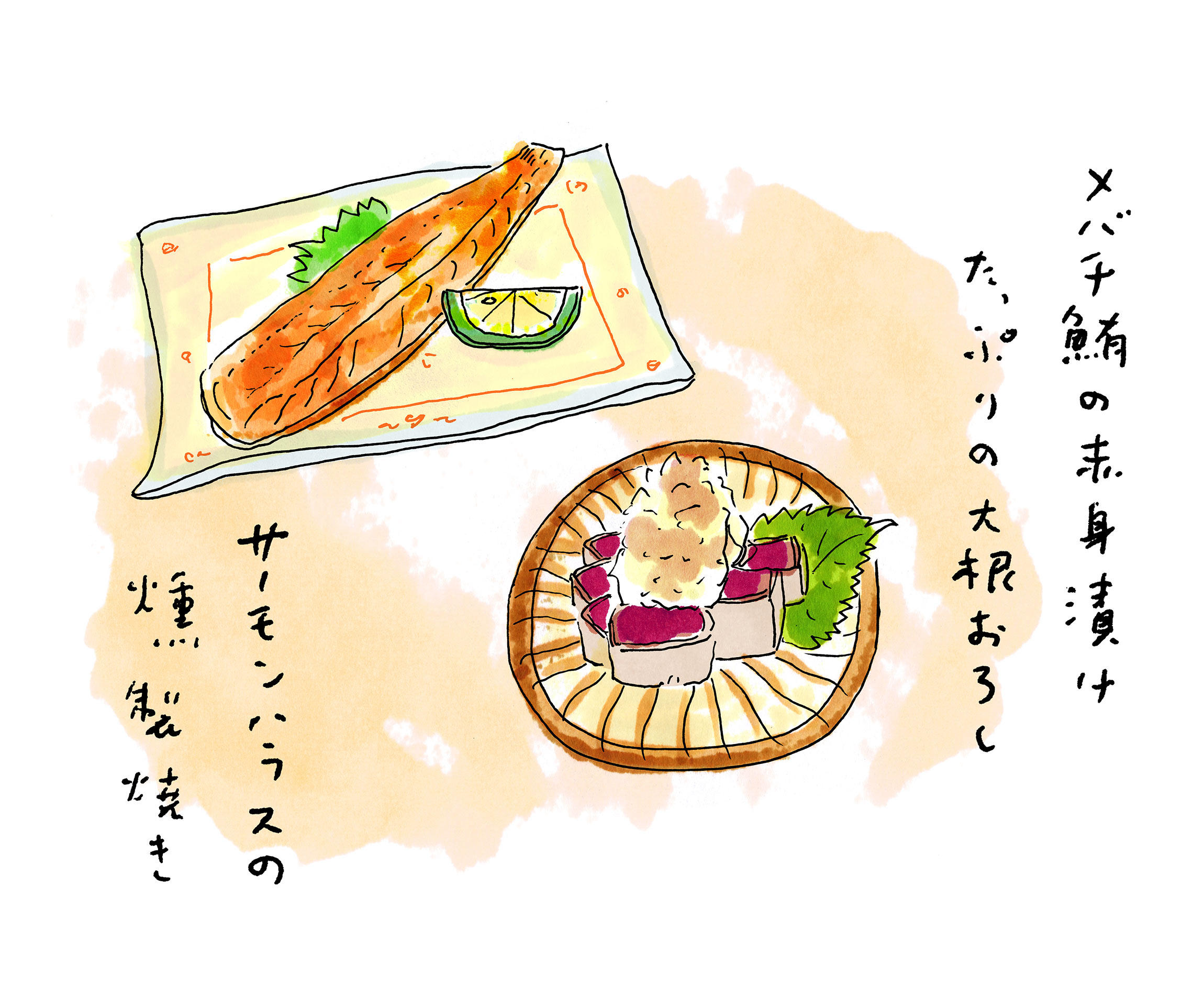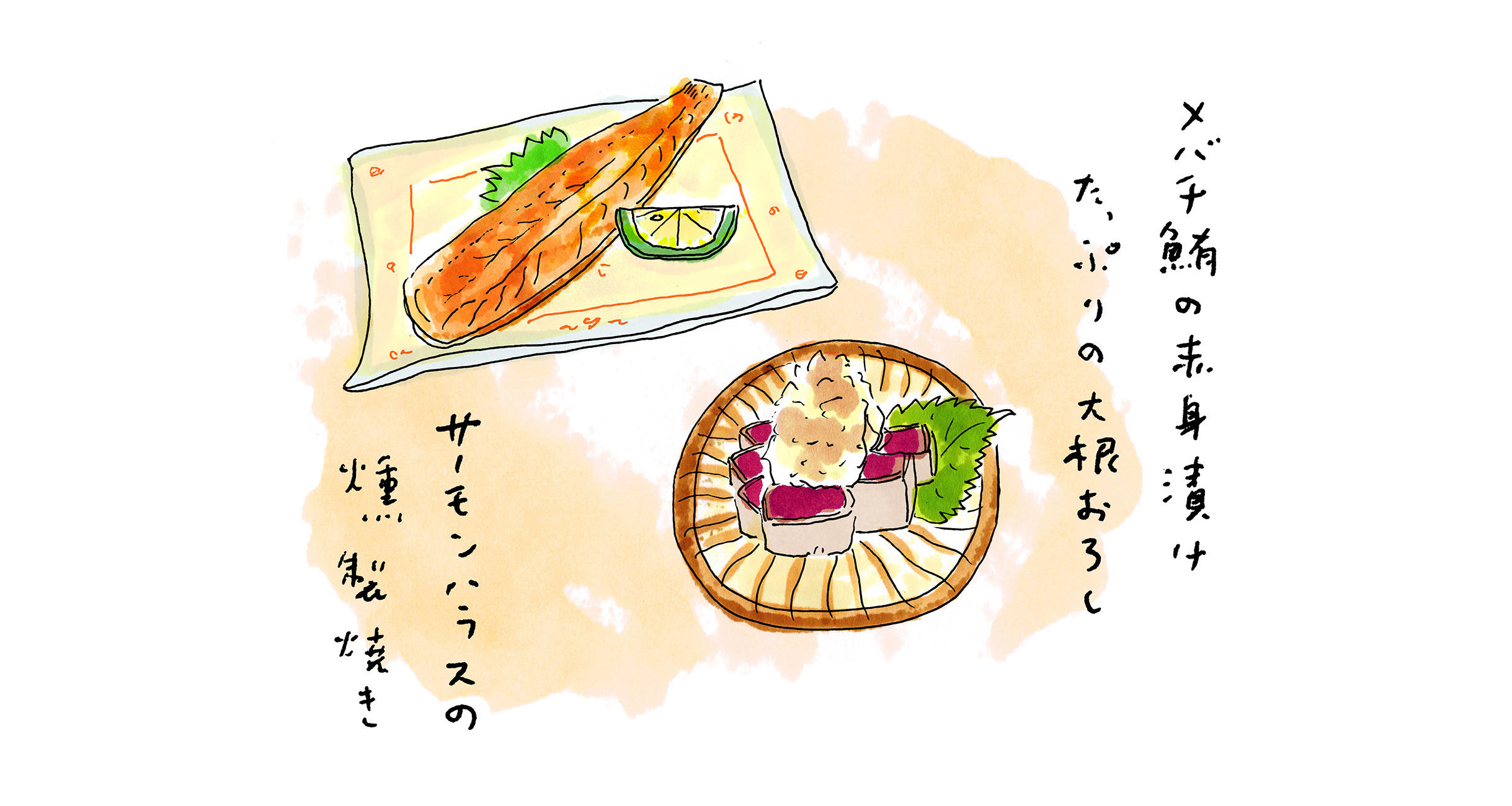 たっぷりの大根おろしをのせた鮪の赤身漬けに、子持ち鮎の甘酢漬け。ホタテの煮凝りに、皮までうまいサーモンハラスの燻製焼き。もうお酒が止まりません。けれども、品書きは目移りするほど豊富だし、お酒も多彩。どんなに勢いつけたって、一夜でこの店を知り尽くすことなどできないのです。