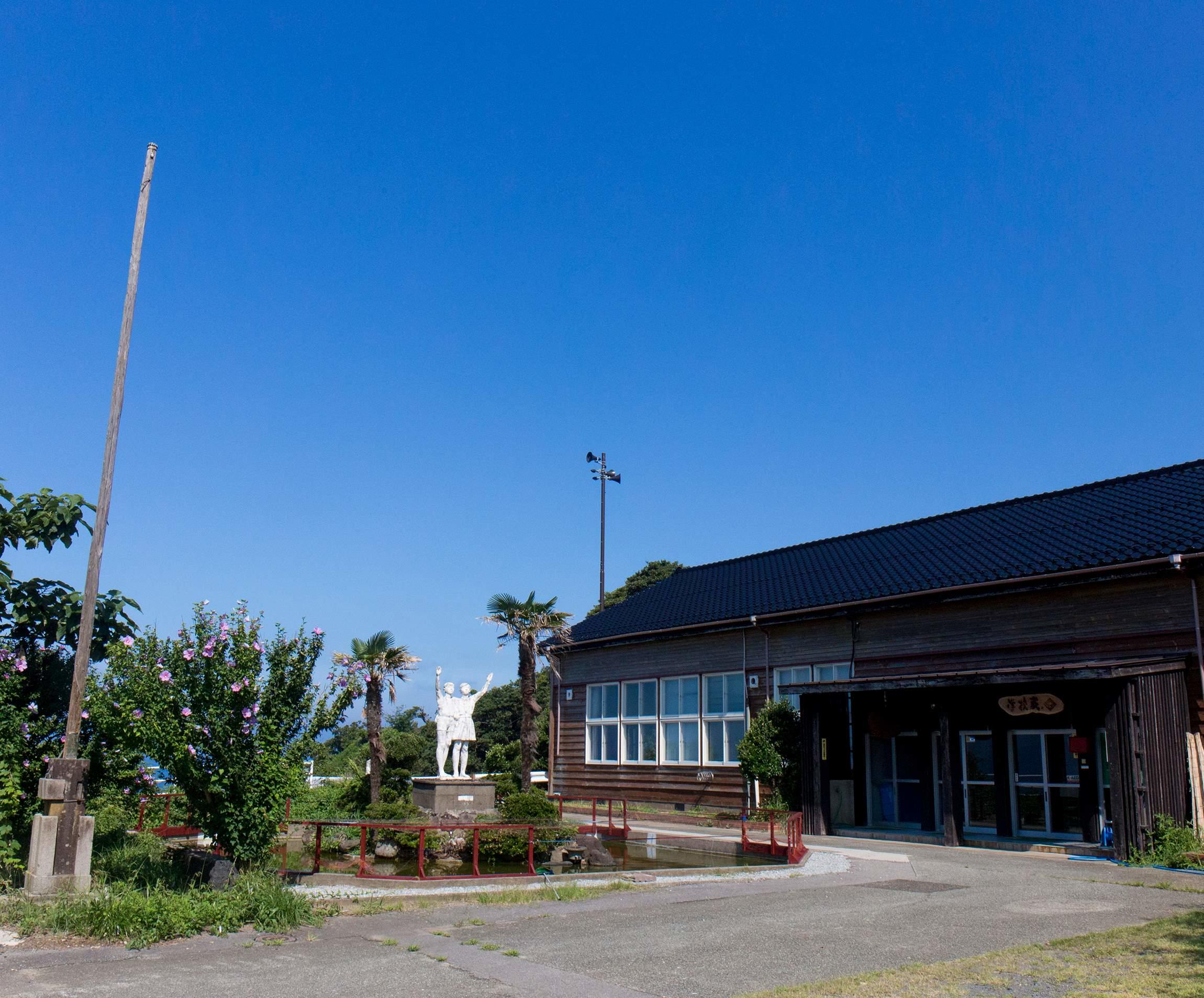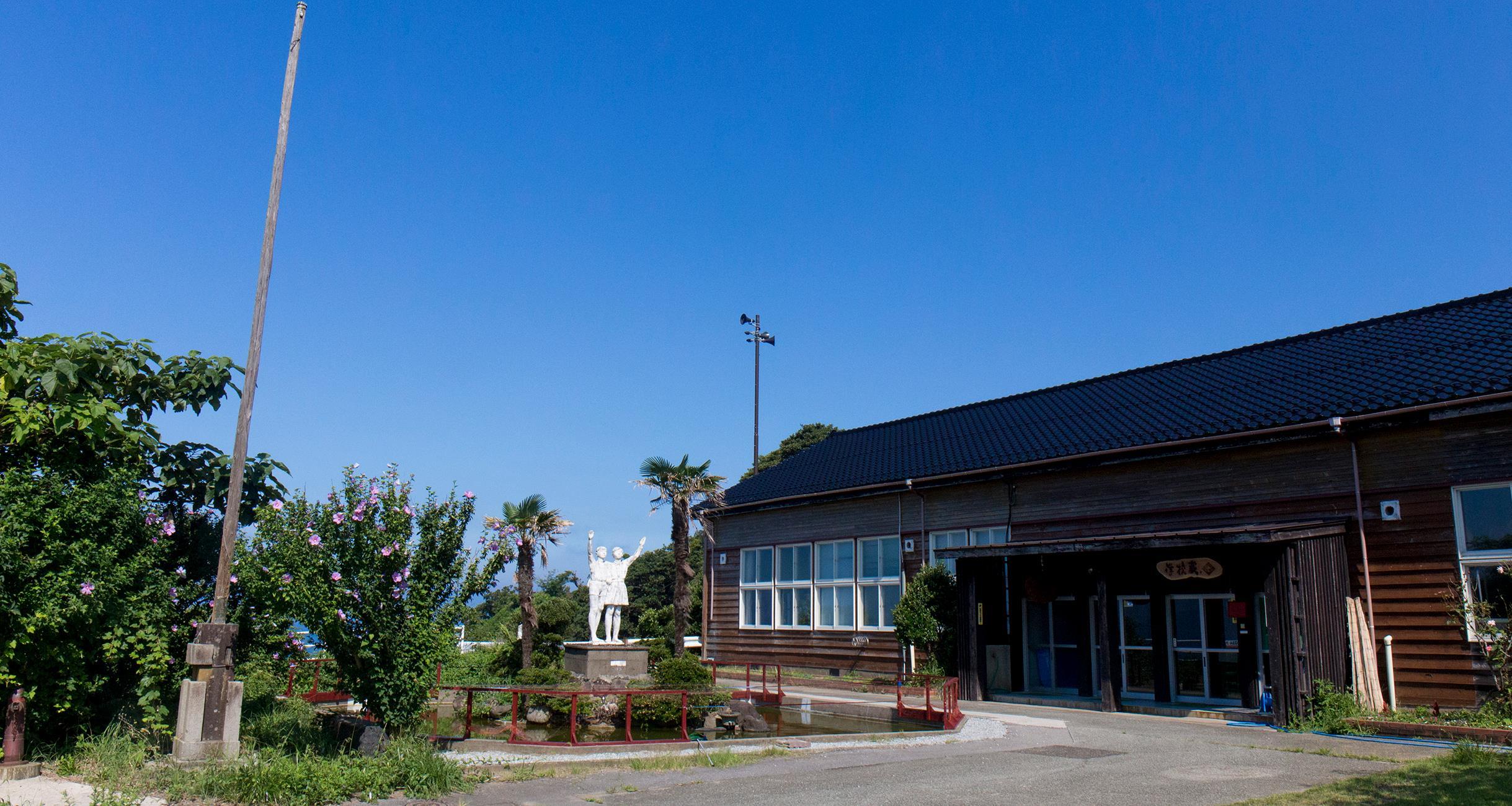 海岸沿いに伸びる国道からキュインと細い急坂を上り、懐かしい佇まいの木造校舎の「学校蔵」に到着した。