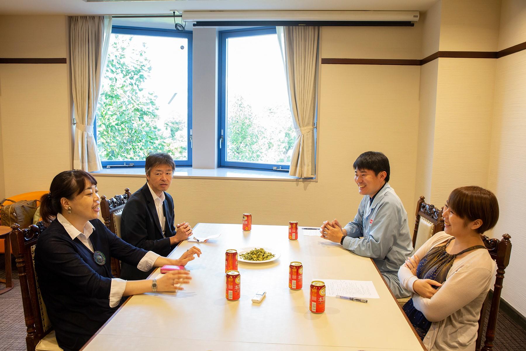 取材は座談会形式で進行。右が「本麒麟」の中味開発を担う醸造家・大橋優隆さんと、ブランド担当・京谷侑香さん。左がdancyu食いしん坊倶楽部のフリーライター・田代貴洋さんと料理研究家の吽野(うんの)英里さん。