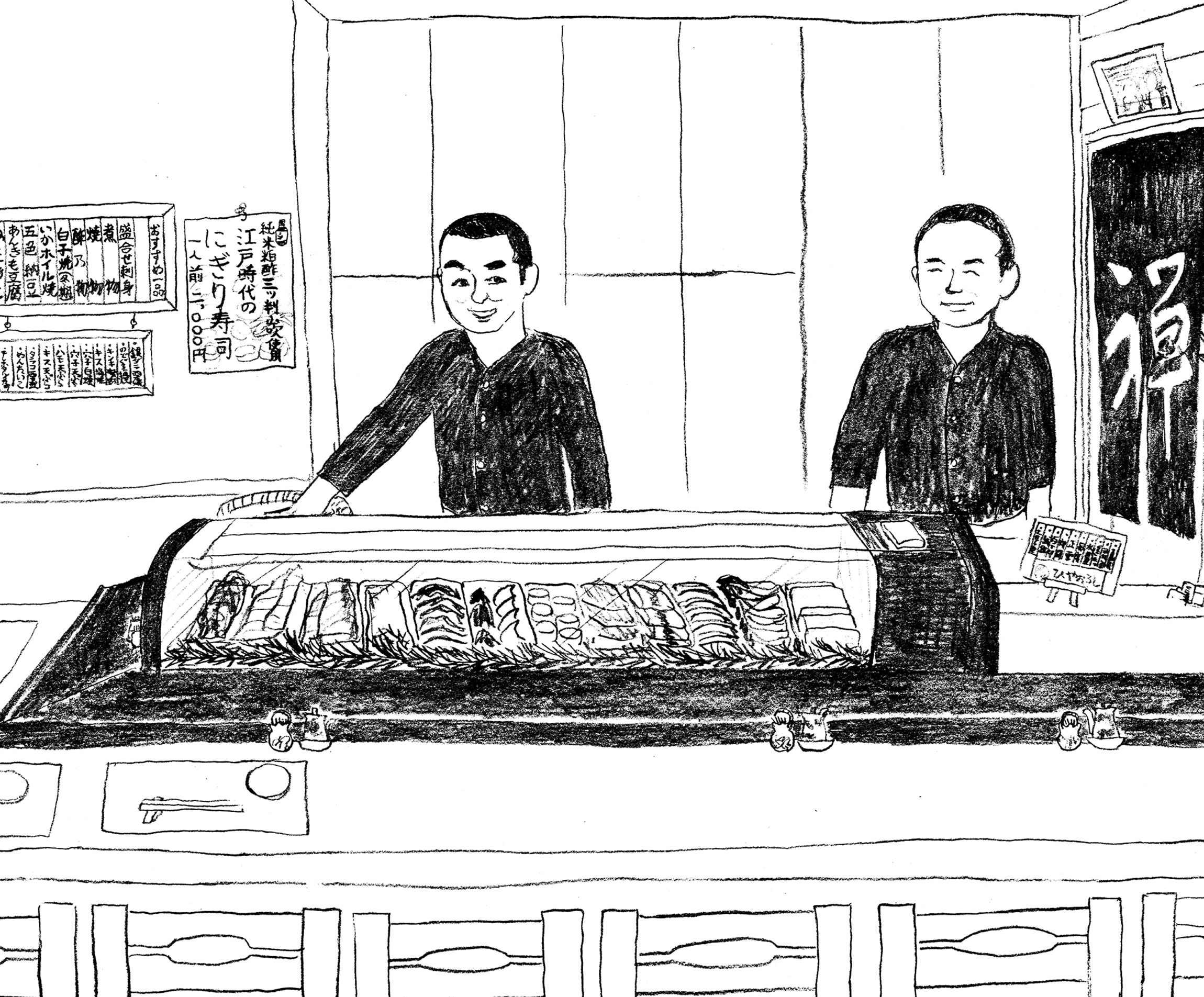 じつは大将、江東区認定の伝統工芸マイスターでもあるという。スカイツリーの開業時には区の依頼で、江戸前寿司の元祖といわれる華屋與兵衛の握りを再現した。赤酢の酢飯で、一貫が現在の3貫分ほどもある大ぶりな握りは、今も予約制で食べられる。