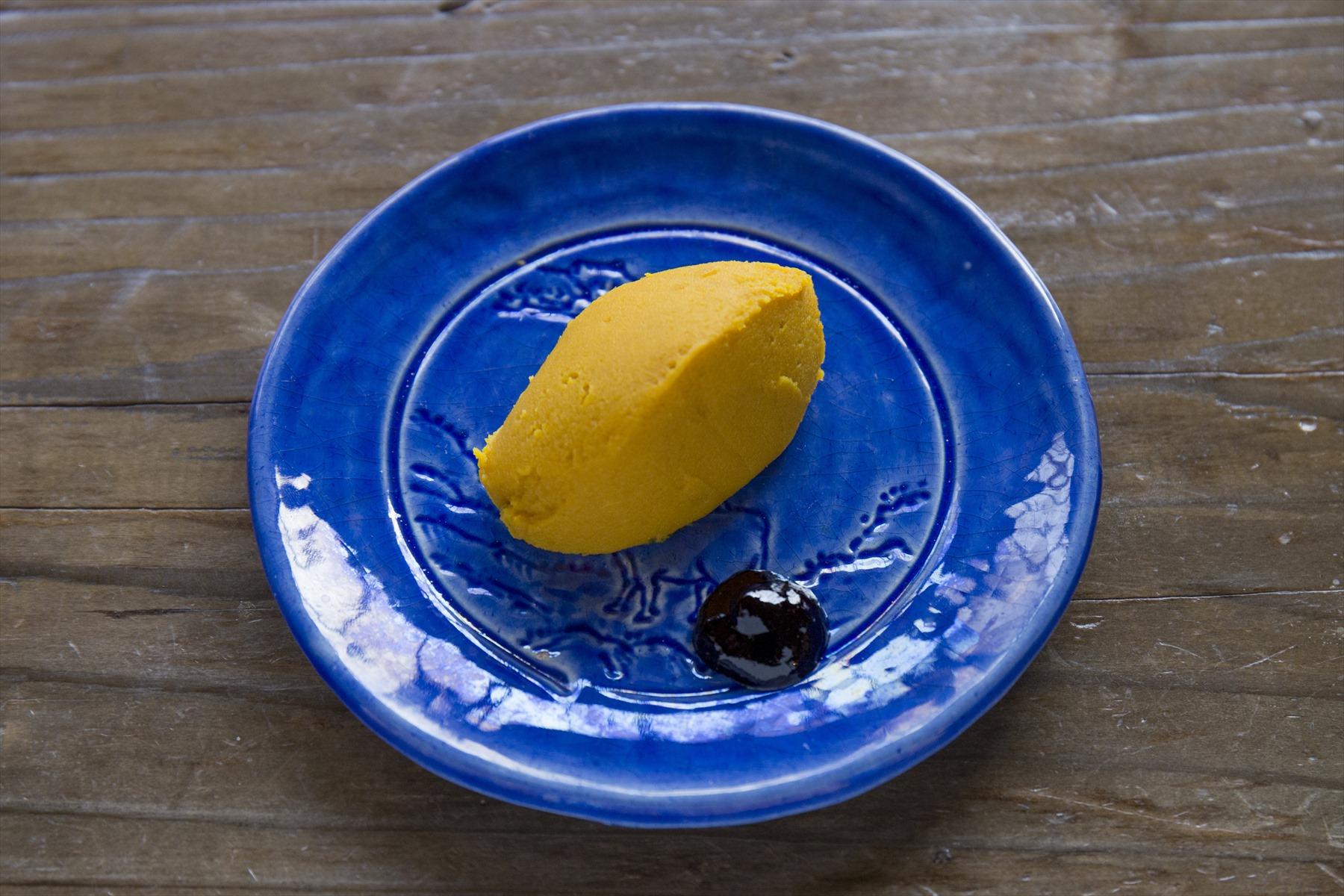 添えられているのは、ナツハゼの実のジャム。酸味があって、甘くコク豊かなかぼちゃのいいアクセントになる。