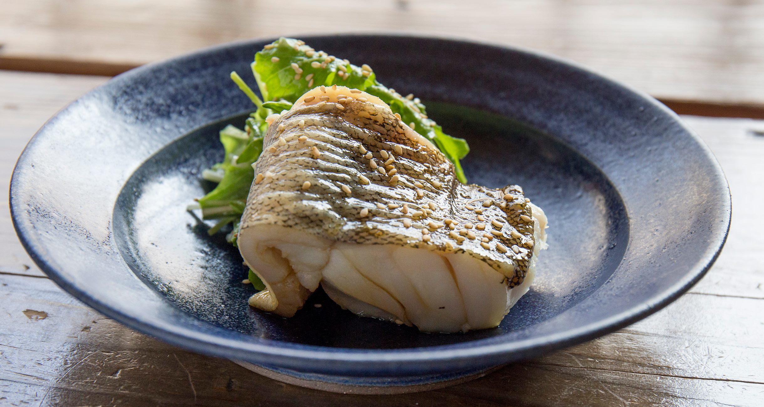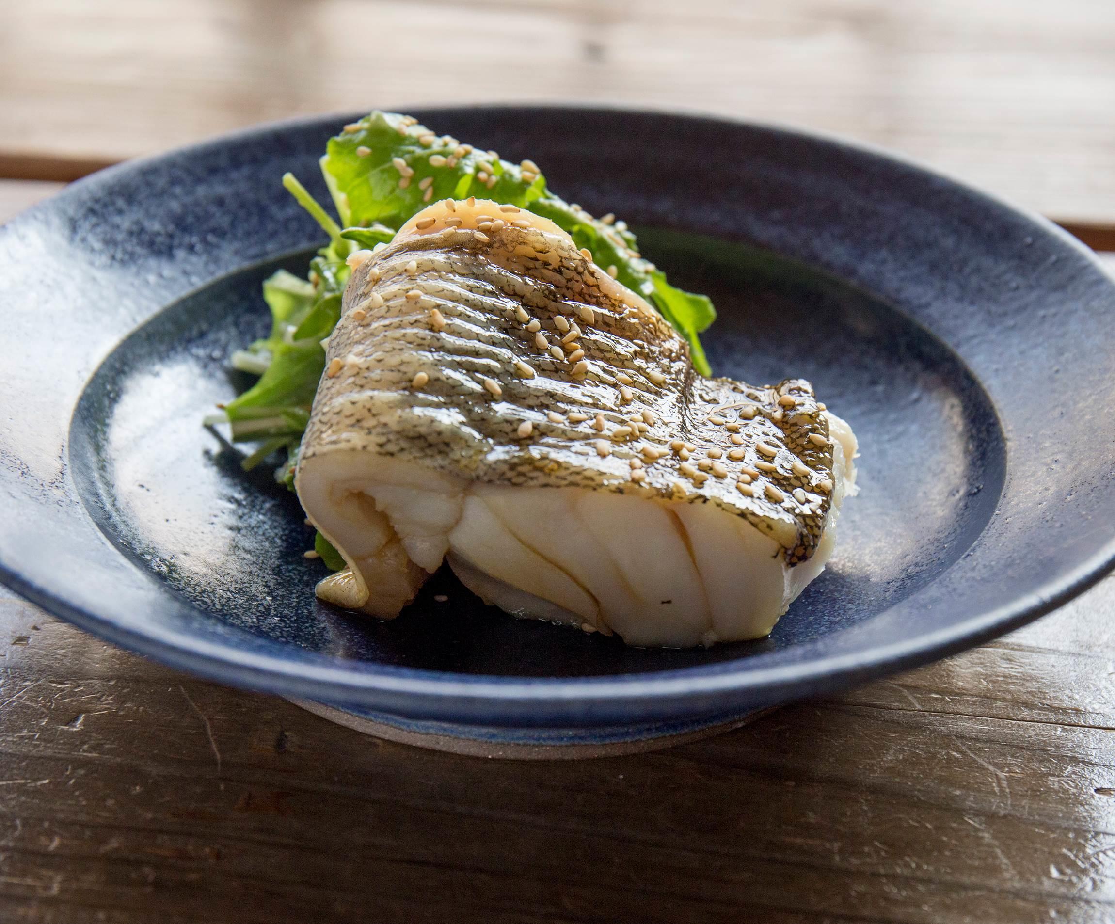 「佐渡は鱈がおいしいんですよ。こちらは釣りものの鱈で、シンプルに熱湯で湯がいて、生姜醤油にさっとくぐらせただけ。冬が旬のイメージがありますが、夏は産卵に向けてえさをたくさん食べている時期で身自体が甘いんです。だから味付けは淡くても十分なんです」