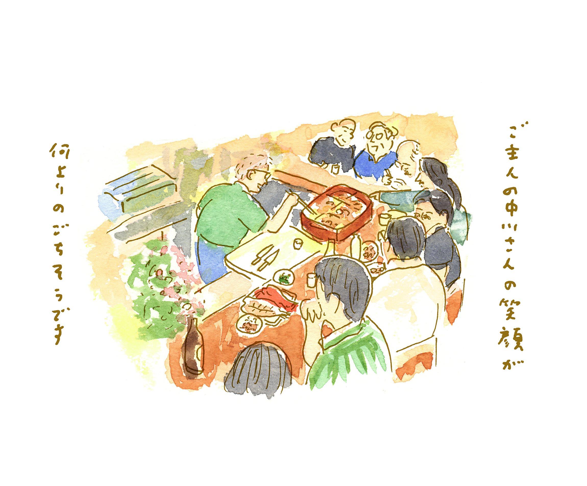 鍋の中を調べつつ、中川さんがタネを数えあげ、そのそばから、それぞれ、好みのものをいう。ちなみに私は、白子、ワカメ、シイタケをいただく。この汁が、また、最高のつまみになるから、際限がなくなってしまう。そいうことで、また徳利を頼む。