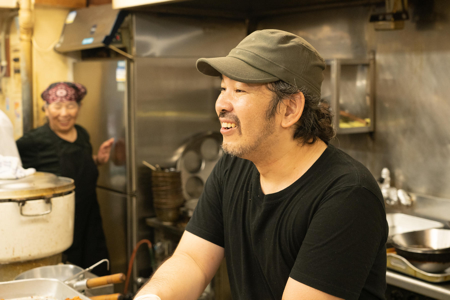 「考えてみたら、もう8年か9年通ってますけど、からあげ丼以外は食べたことないかなあ。ただ、たまにトンカツや海老の切れ端が入ってるんでよね。もしかしたら、厨房の大平さんが『こいつ、よく見る顔や』って思ってサービスしてくれてるのかも」