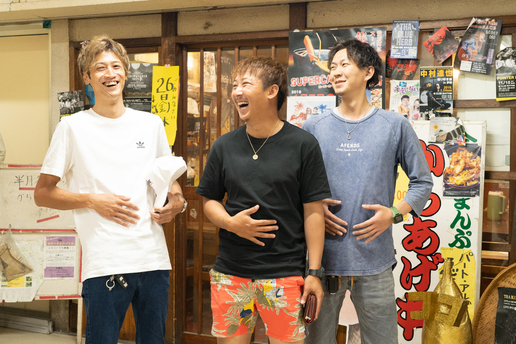 「ぼくらは、地元の知り合いとその同級生みたいな関係です。ここに来ると高校時代を思い出しますね。ちゅーても、まともに卒業しているのはひとりだけですけど」
