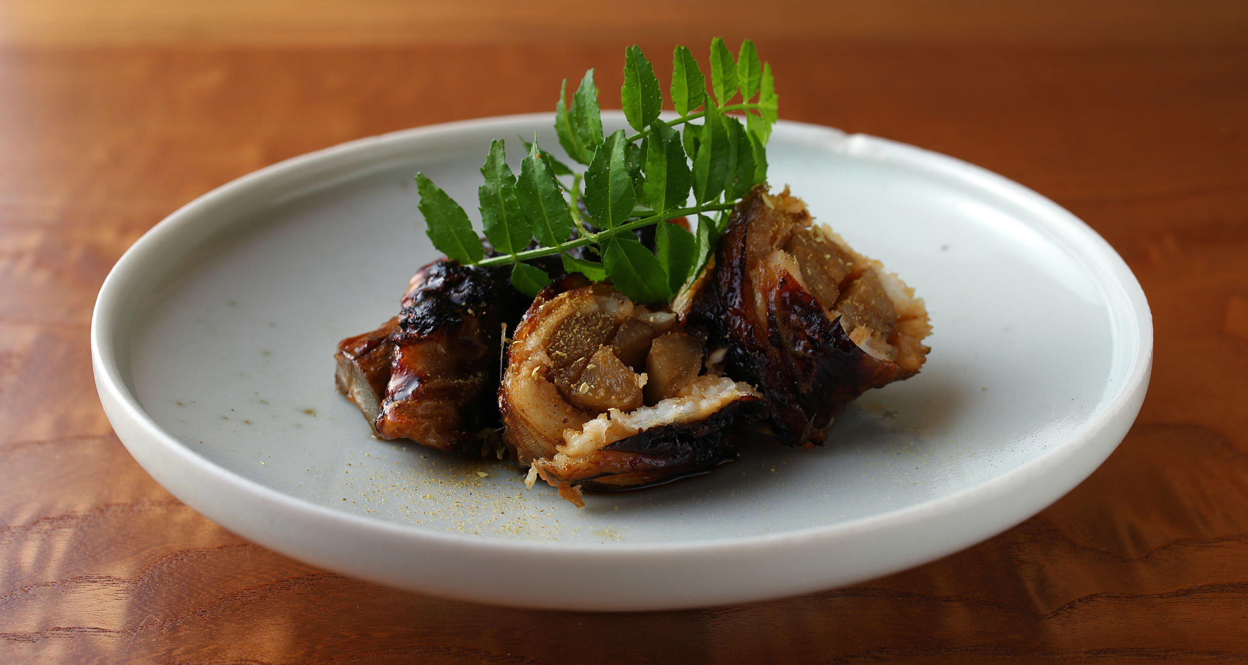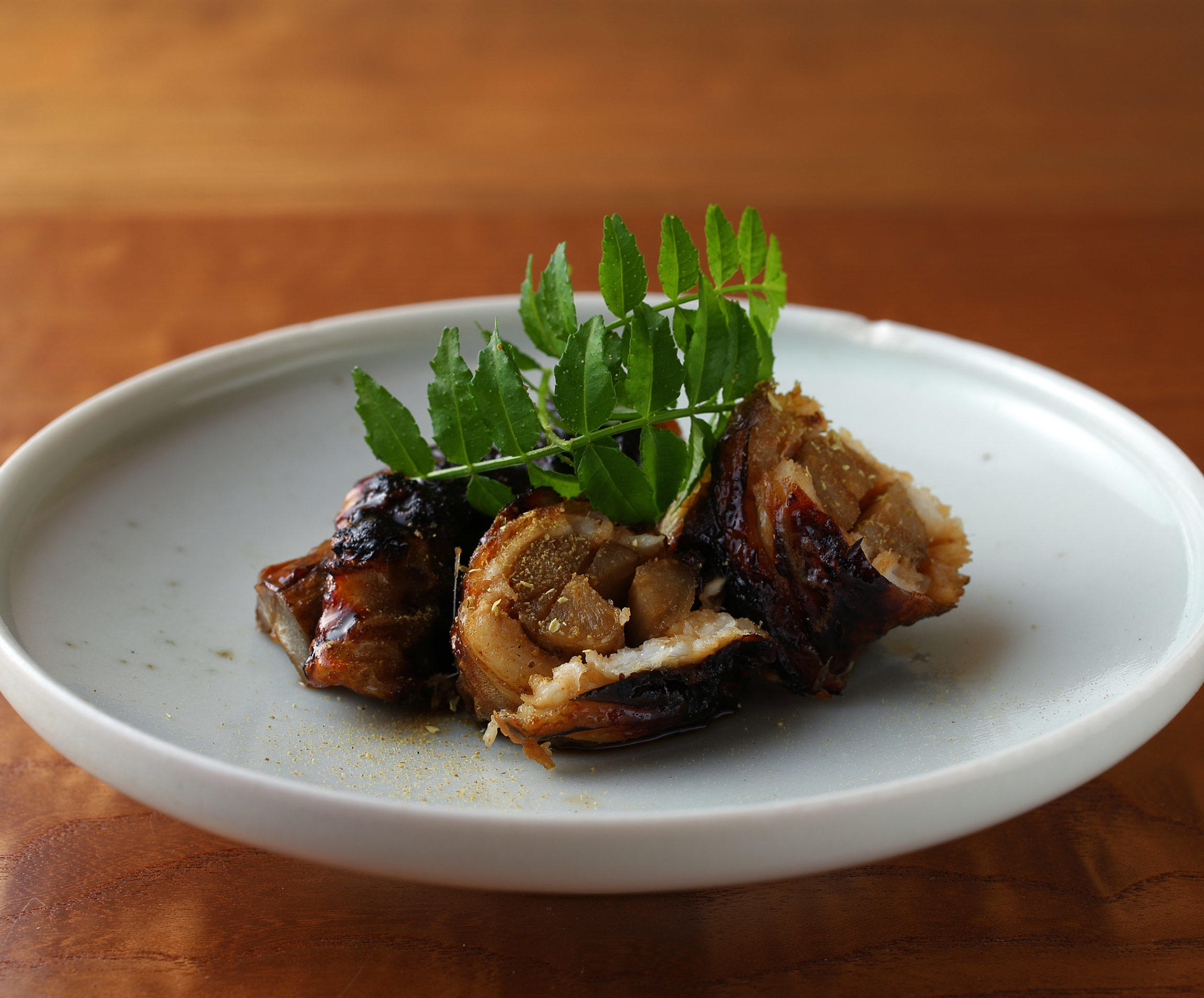 「高級魚のまなかつおは、魚自体が美味しいから、手をかけ過ぎない料理が一番だ」ともんちゃんは言う。さっと火をいれるくらいがよくて、味付けも軽めにとどめておくそうだ。搾ったすだちに塩と味醂を加えた自家製ポン酢を少しかけるだけ。ふっくらとした身の旨味がじんわり広がる。ざくっとした歯触りの鬼おろしが効いている。もんちゃんの技量は益々あがっているようだ。