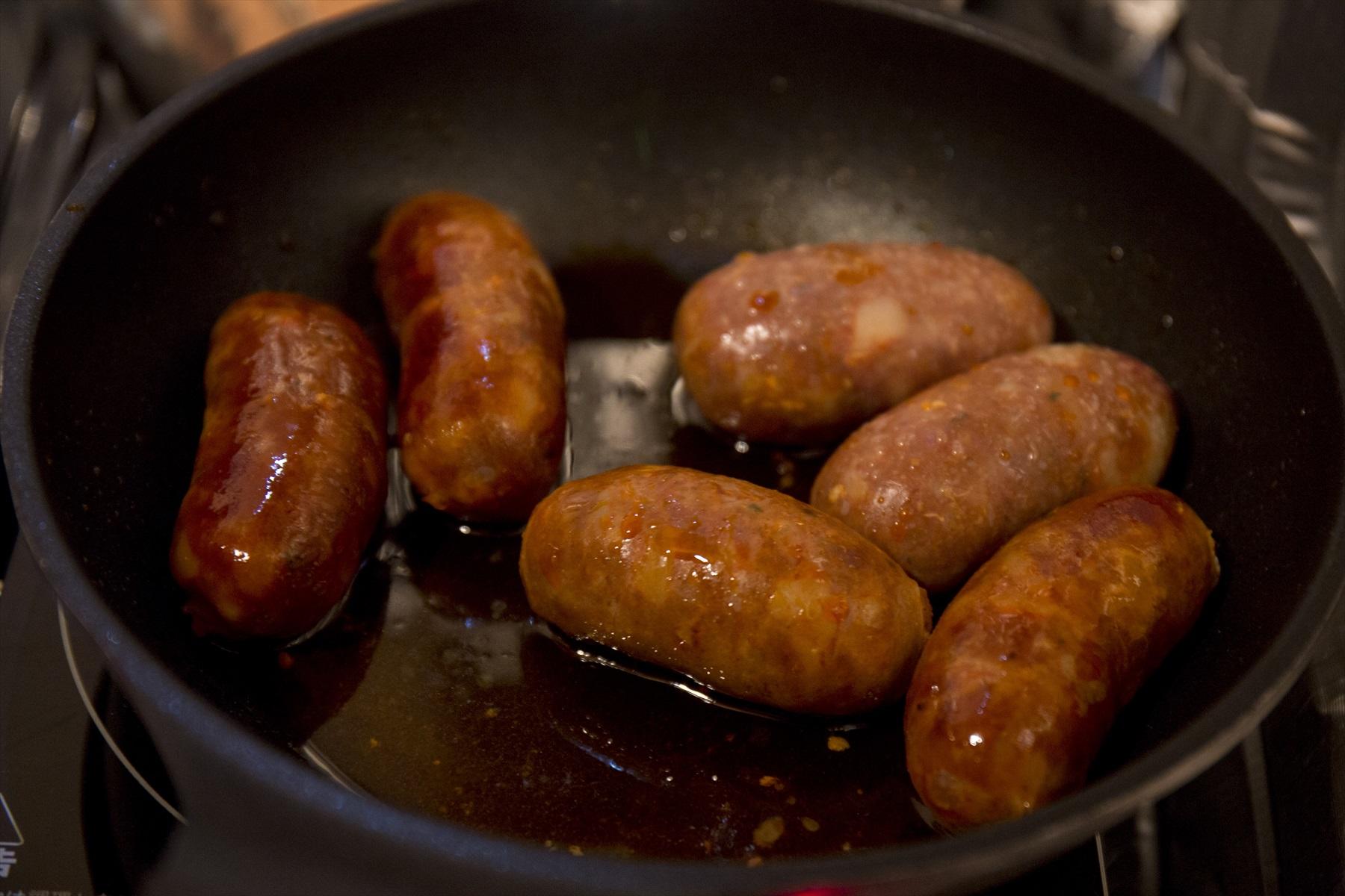 ぷっくりとはちきれそうに中身の詰まったチョリソーからは、脂が浮きあがり、なんともおいしそう。